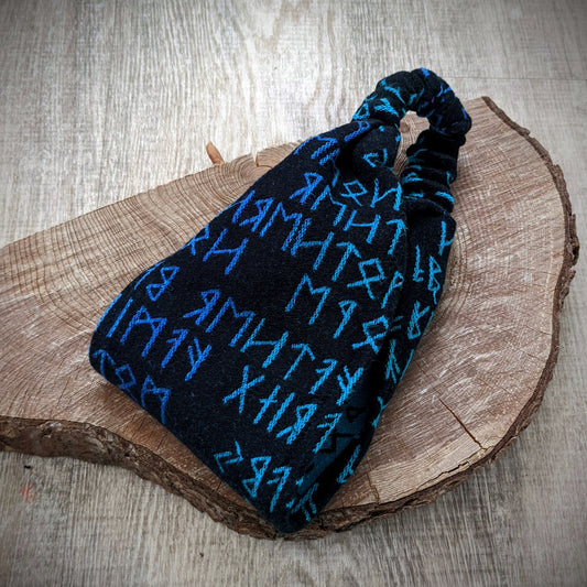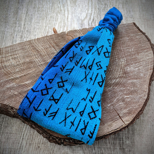 Sold outScarf headband Runes on blue
