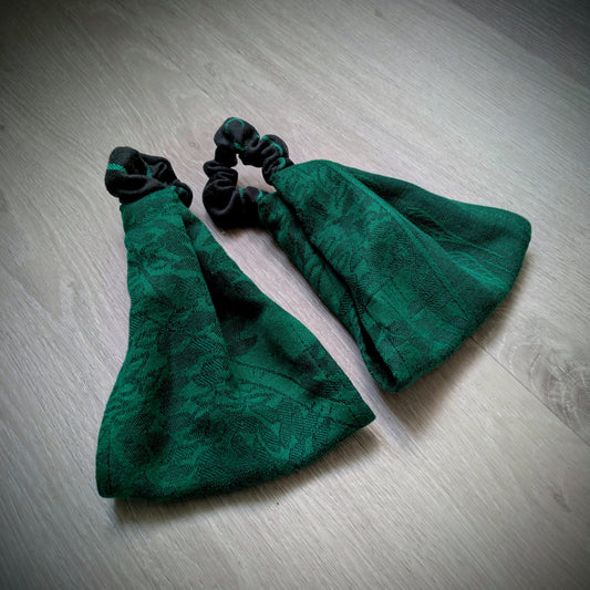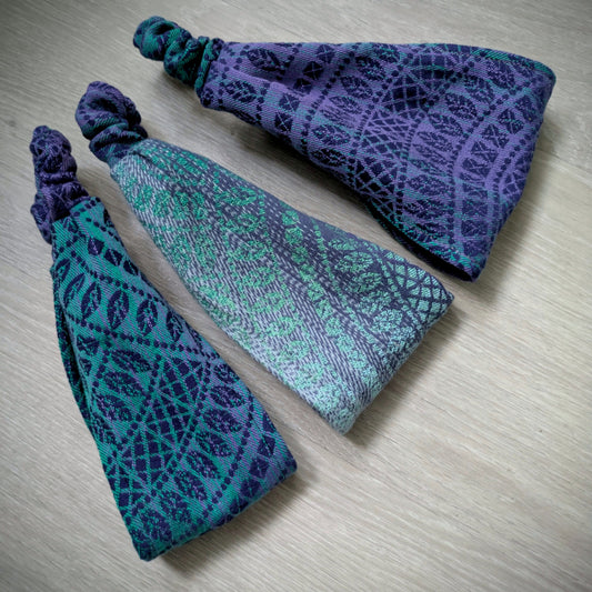 Practical headbands sewn mainly from offcuts from scarves for wearing children.
