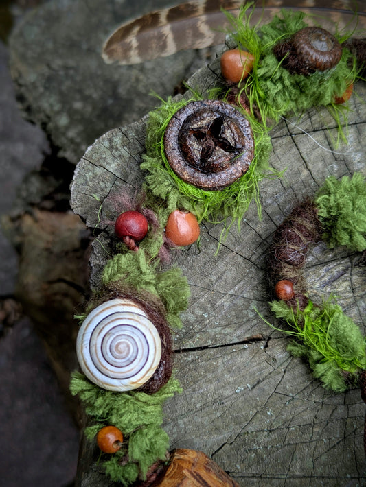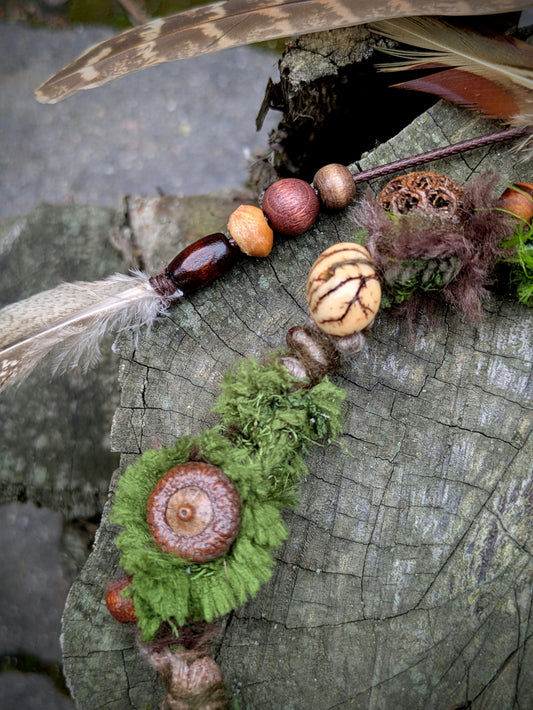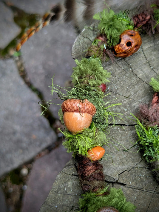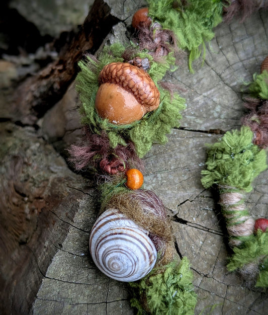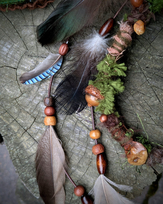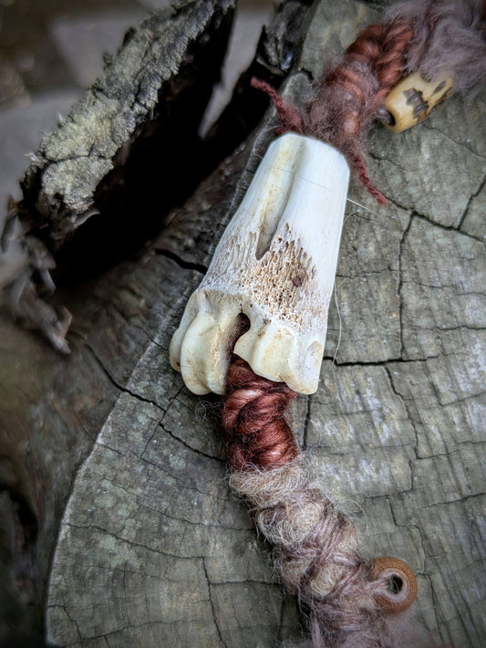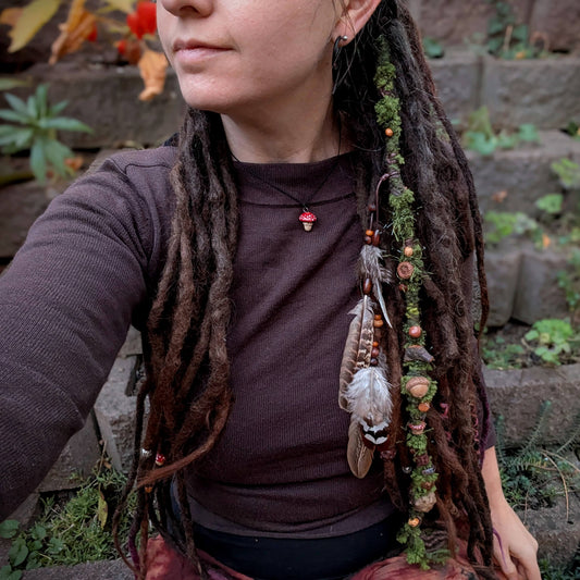 Decorative dreadlocks made from leftover yarn, sheep's wool and fabric scraps. They can be easily attached to any hairstyle using a small elastic band that is included with each wrap.