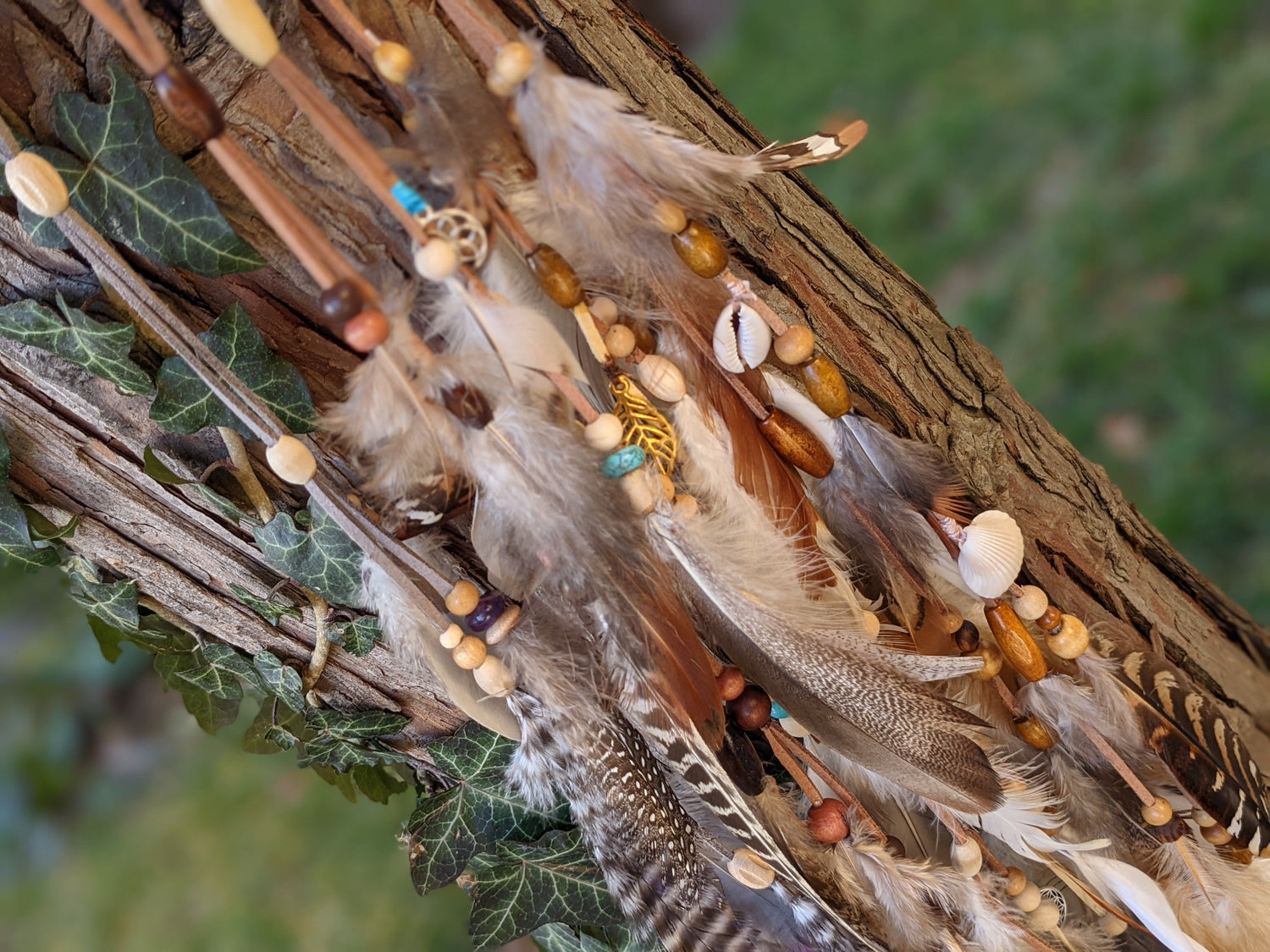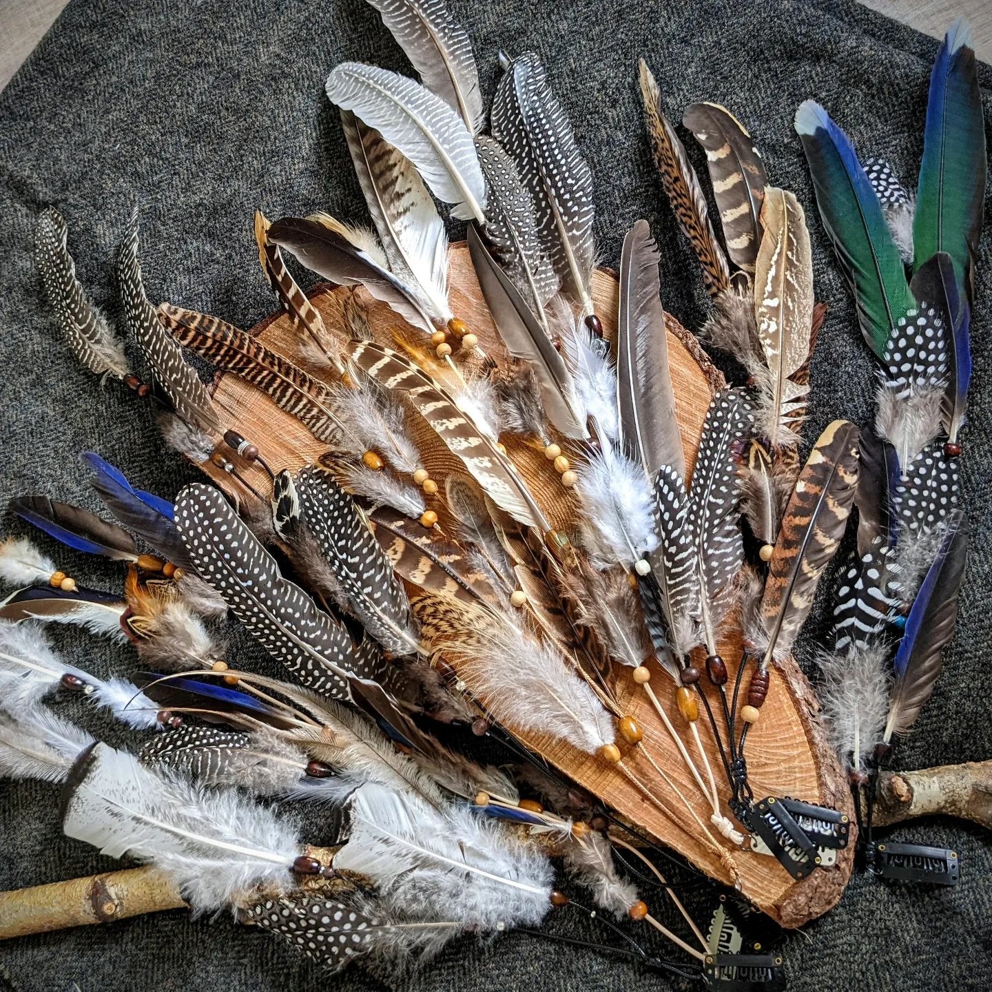 Feather hair ornaments on clip-in clips that you can easily attach to...