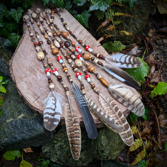 Korálek na dready muchomůrka s pírkem sojka 1