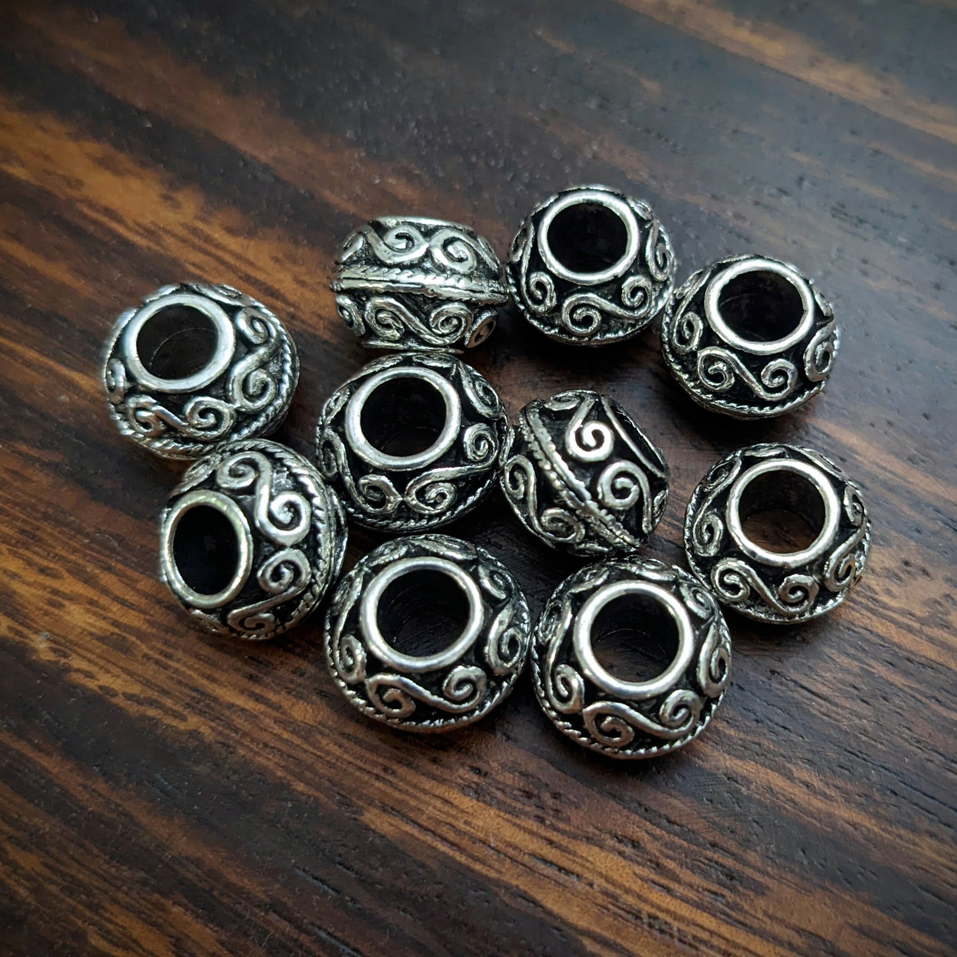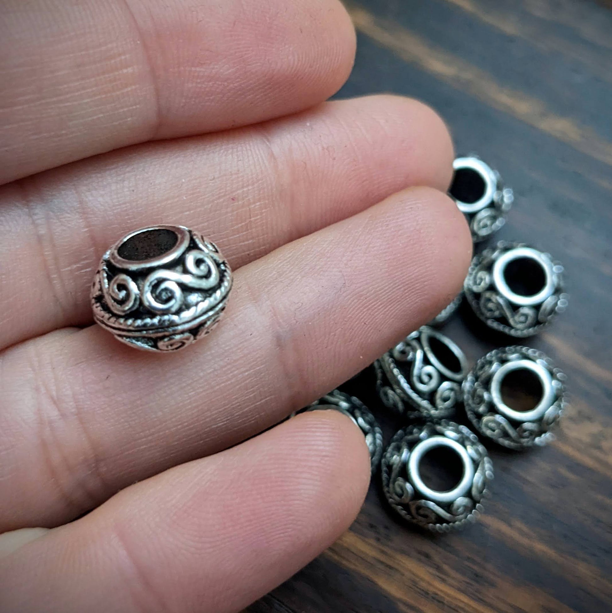 Kovové korálky stříbrné barvy vhodné na tenčí až středně silné dready.