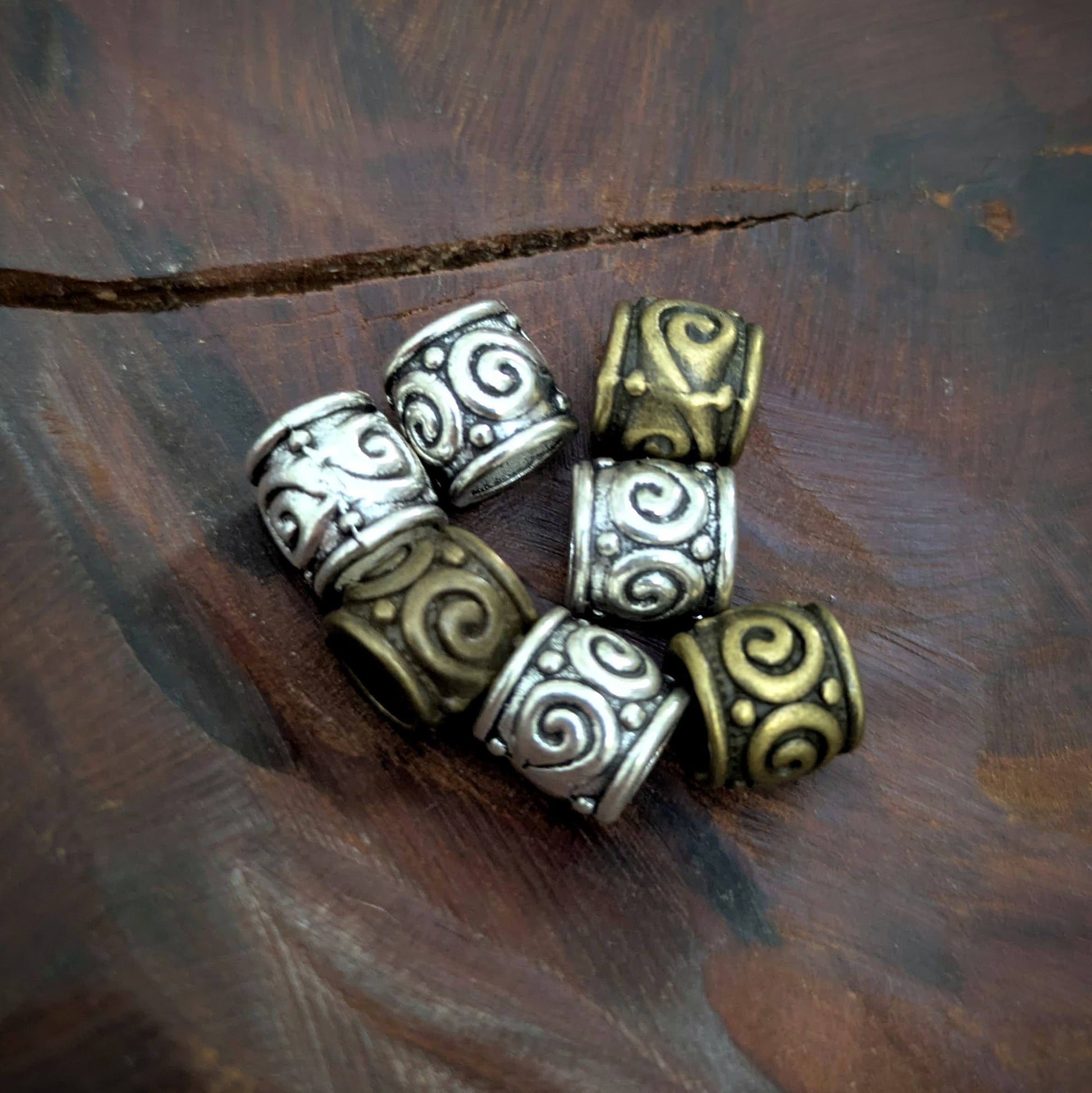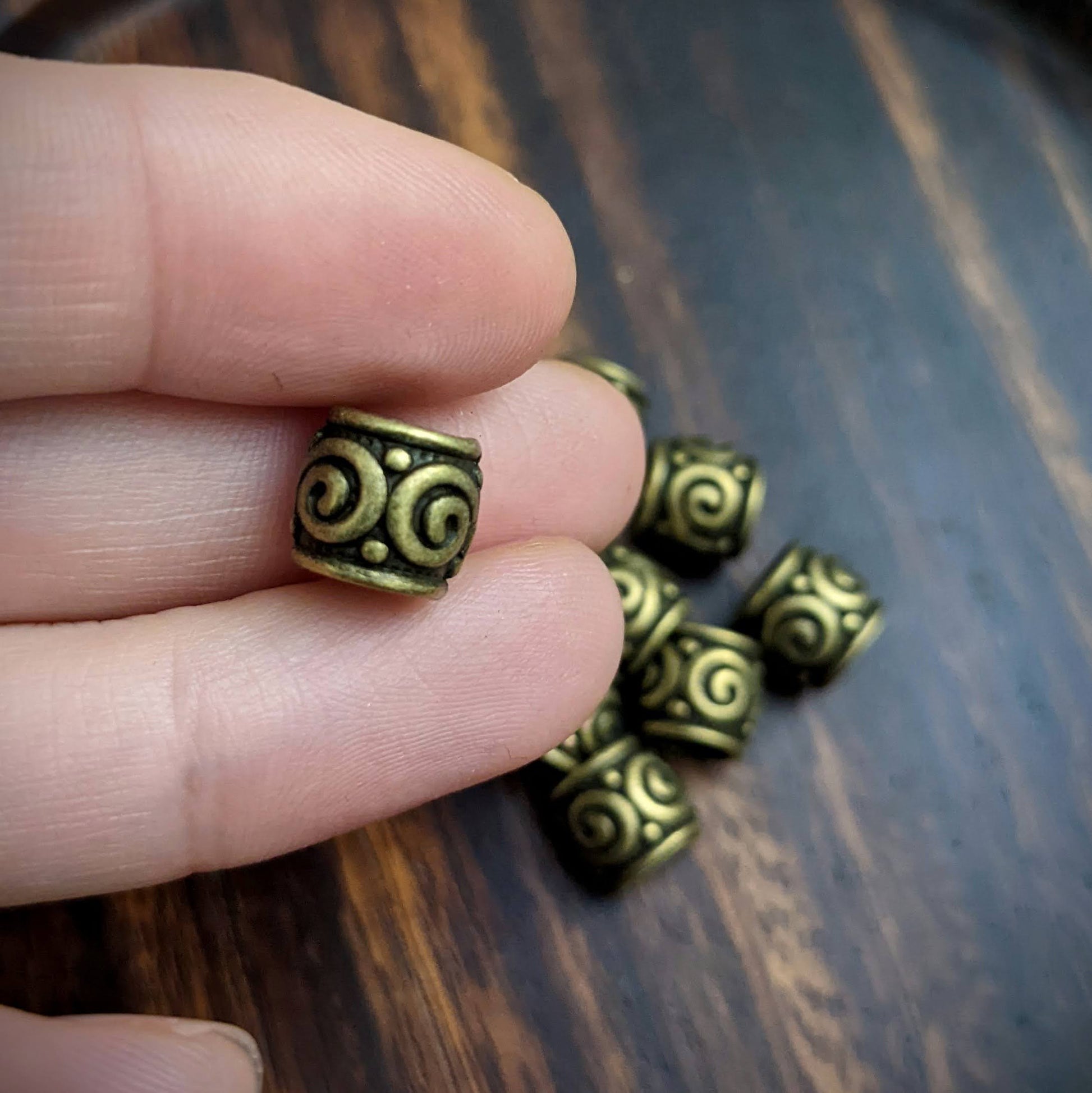 Kovové korálky mosazné barvy vhodné na tenčí až středně silné dready.