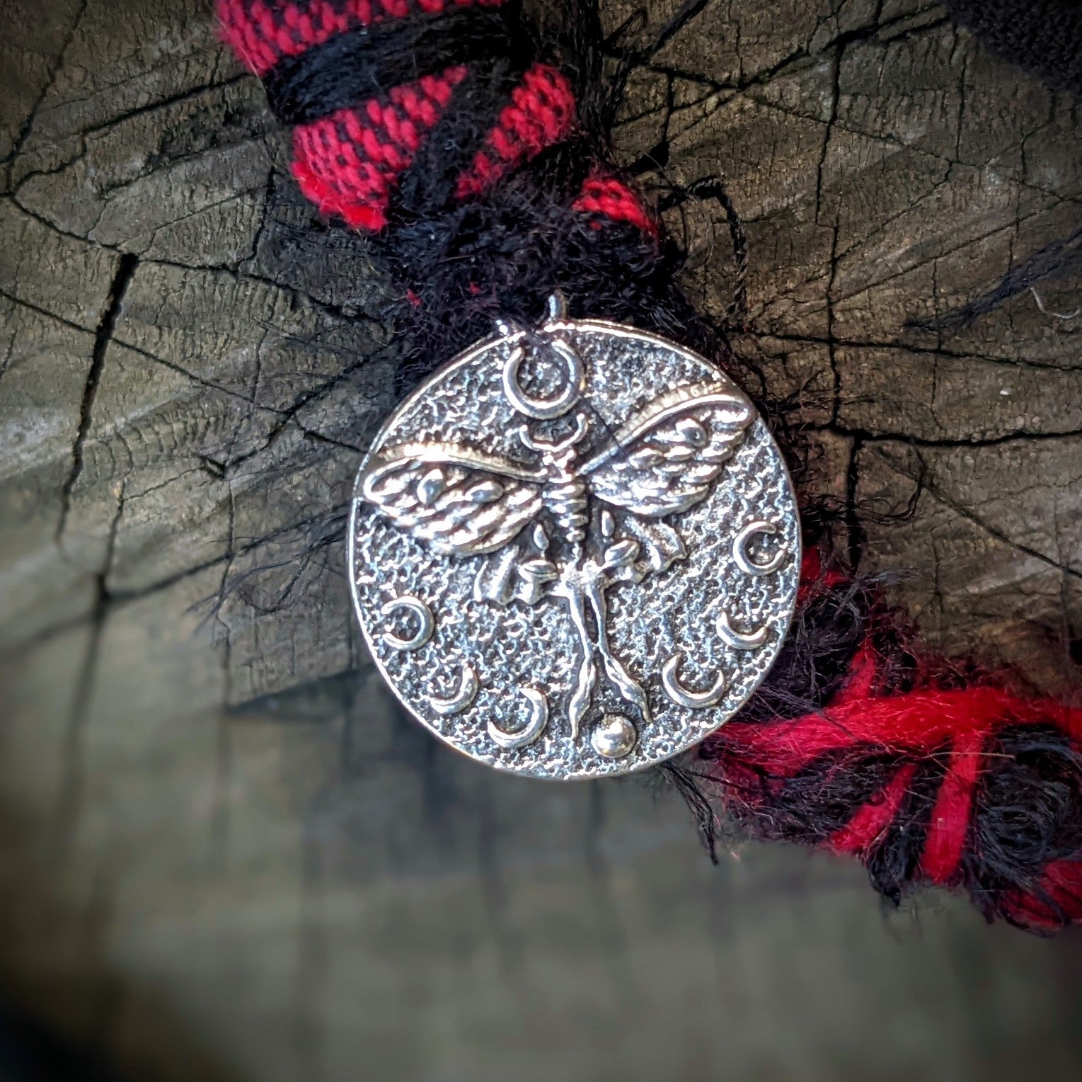 Ozdobný dread vyrobený z příze a recyklovaných látek. Zdobeno dřevěnými, kovovými a kostěnými korálkami, kovovými přívěsky a pírkovým závěsem, který jde z dreadu sundat a použít i samostatně jako pírková ozdoba do vlasů/dreadů.