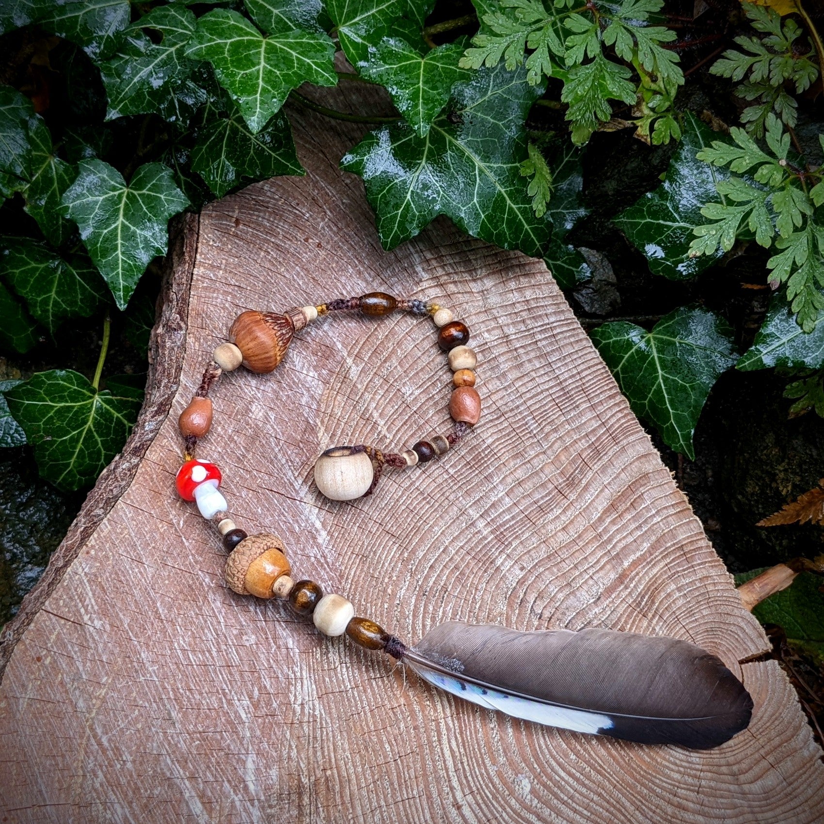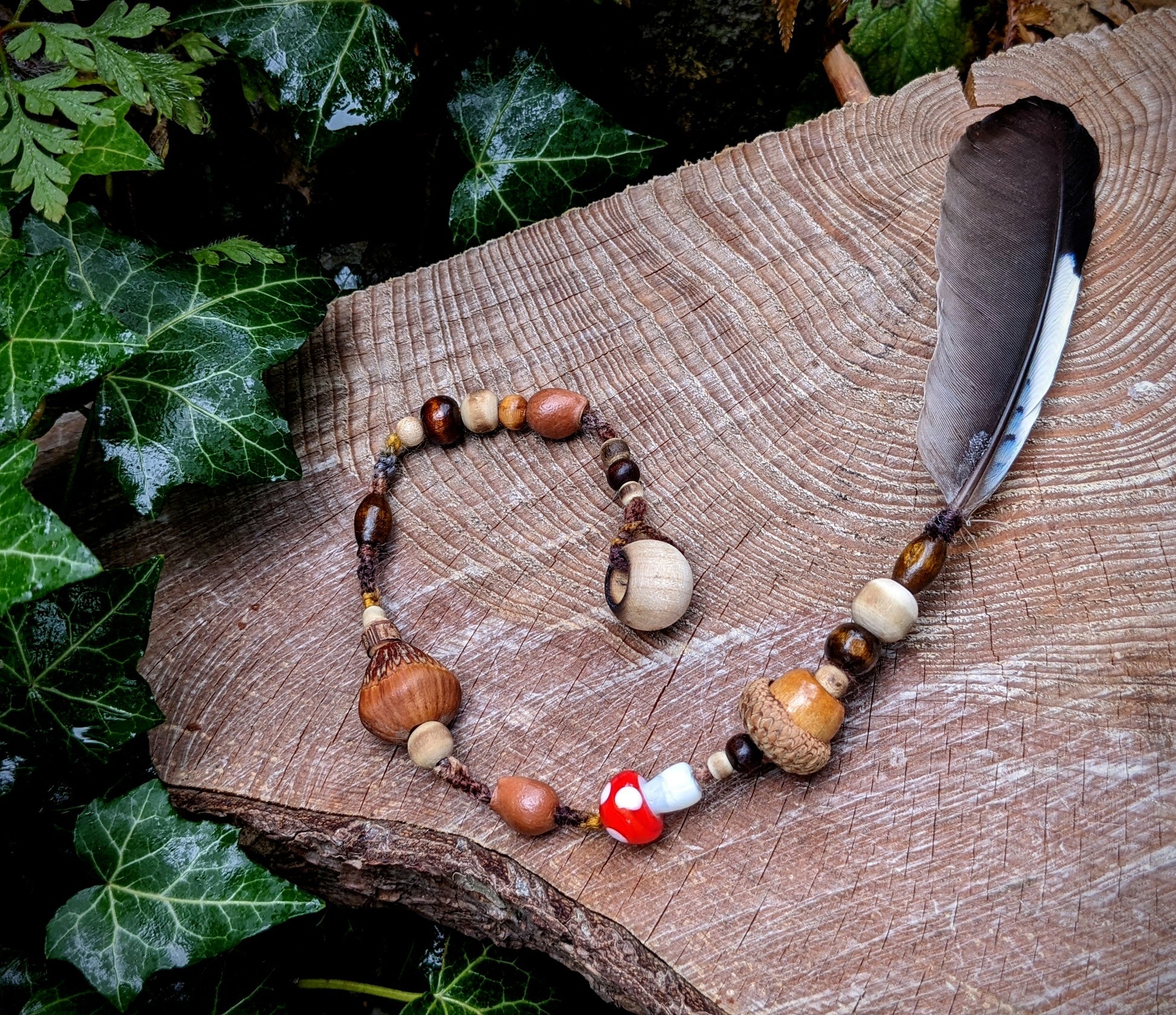 Korálek na dready muchomůrka s pírkem sojka 1