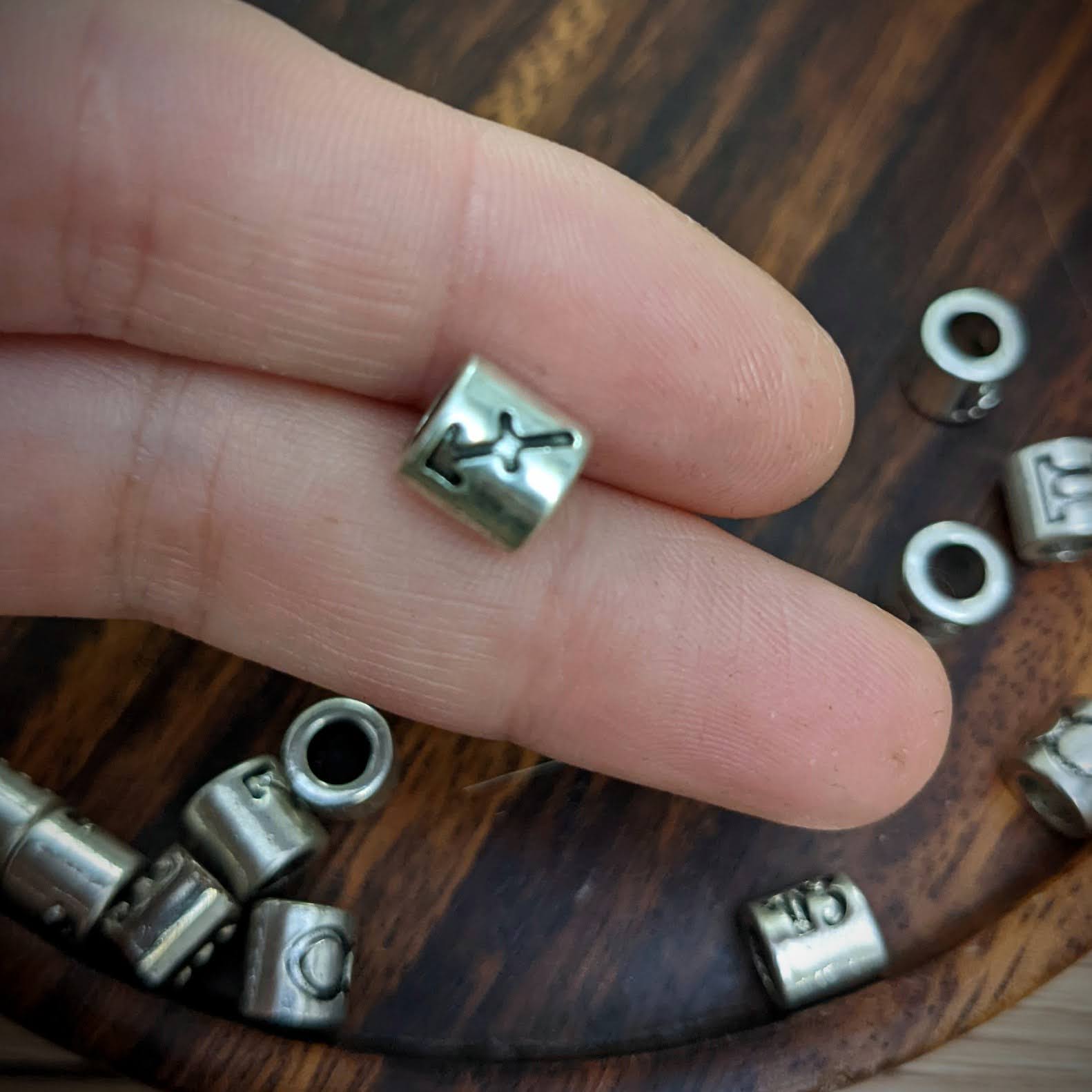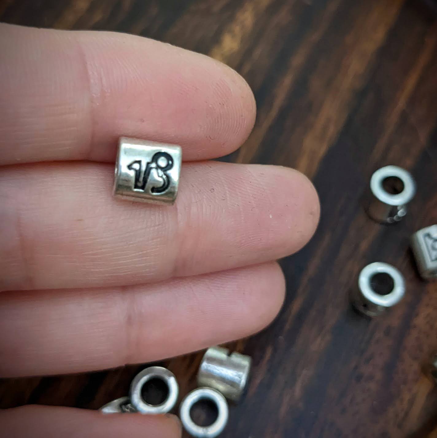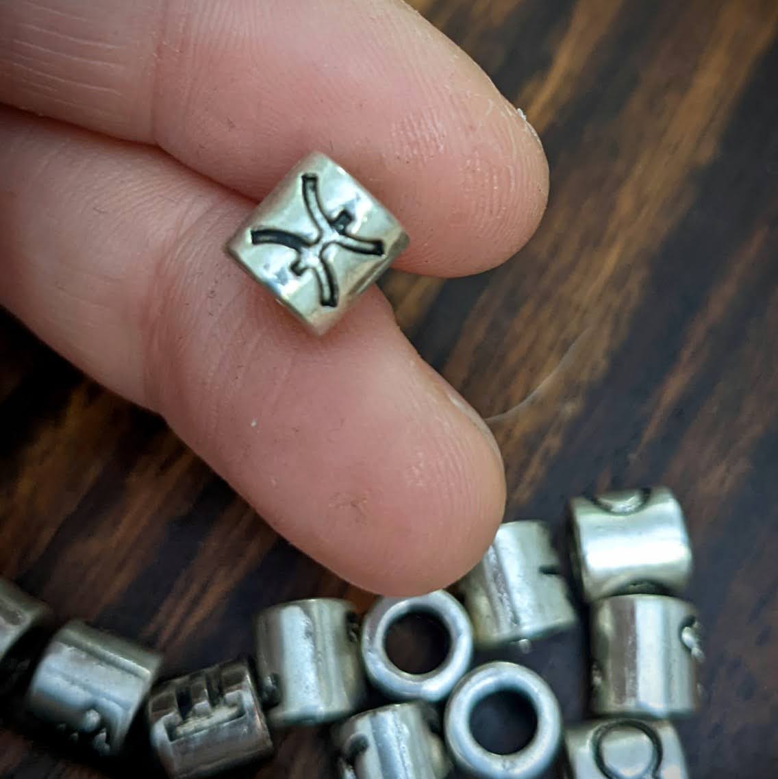 Kovové korálky s motivy znamení zvěrokruhu vhodné na tenké dready.