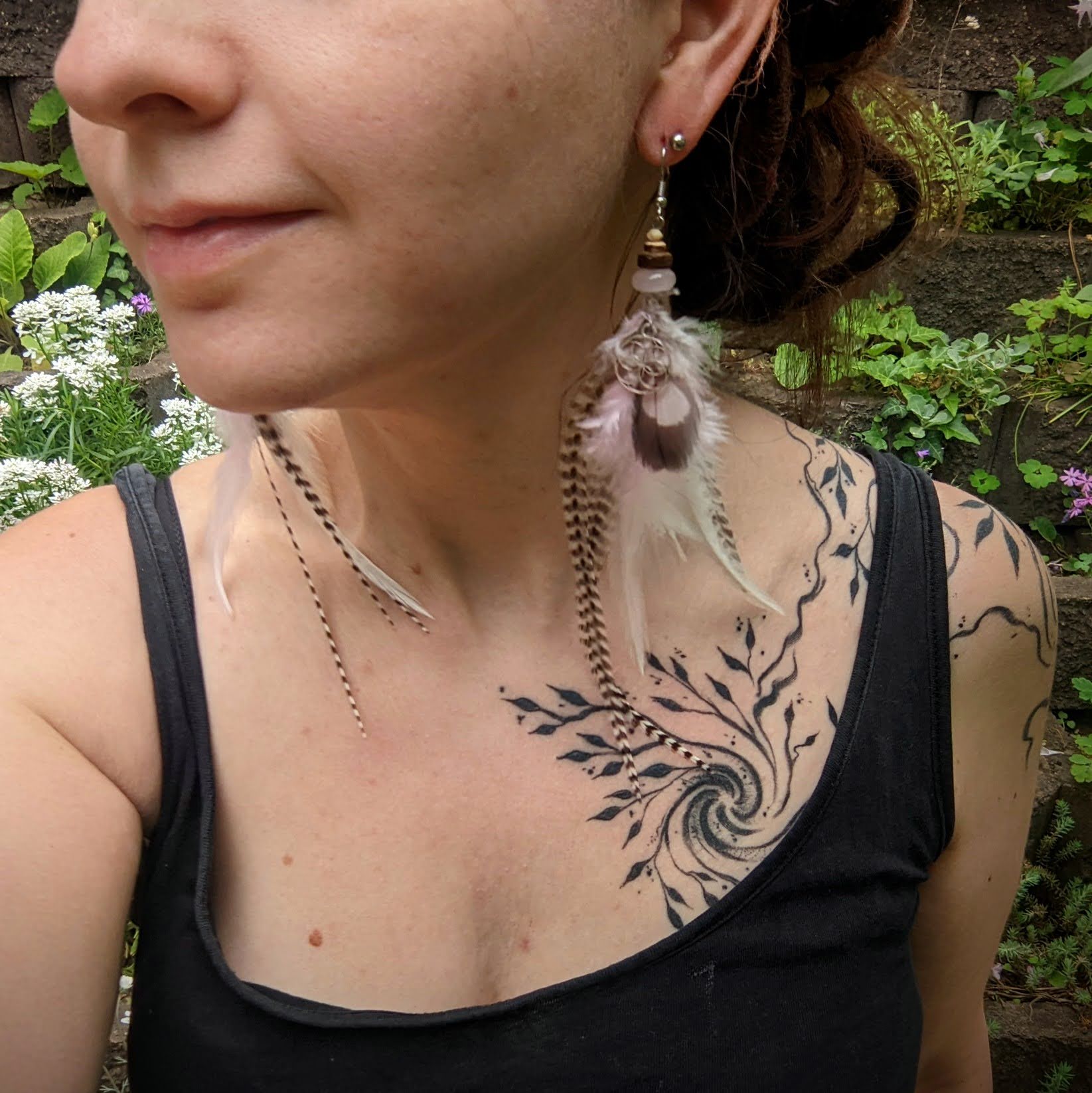 Výrazné peříčkové náušnice (káně, kohout...) doplněné mandalou, růženínovými, kostěnými a dřevěnými korálkami. Háčky jsou z chirurgické oceli, dodávám se silikonovými zarážkami. Délka ozdobné části náušnic je cca 15 cm.