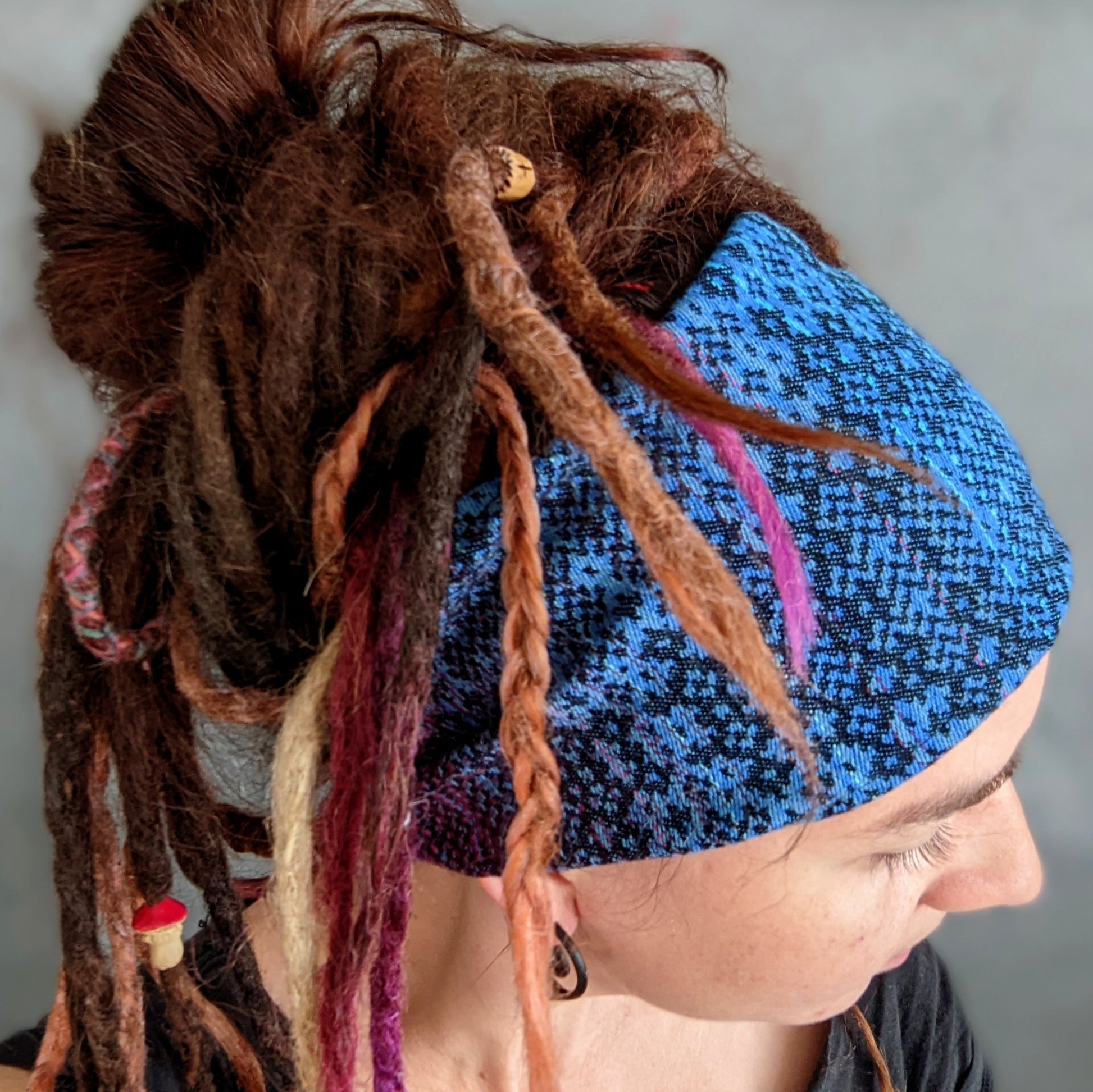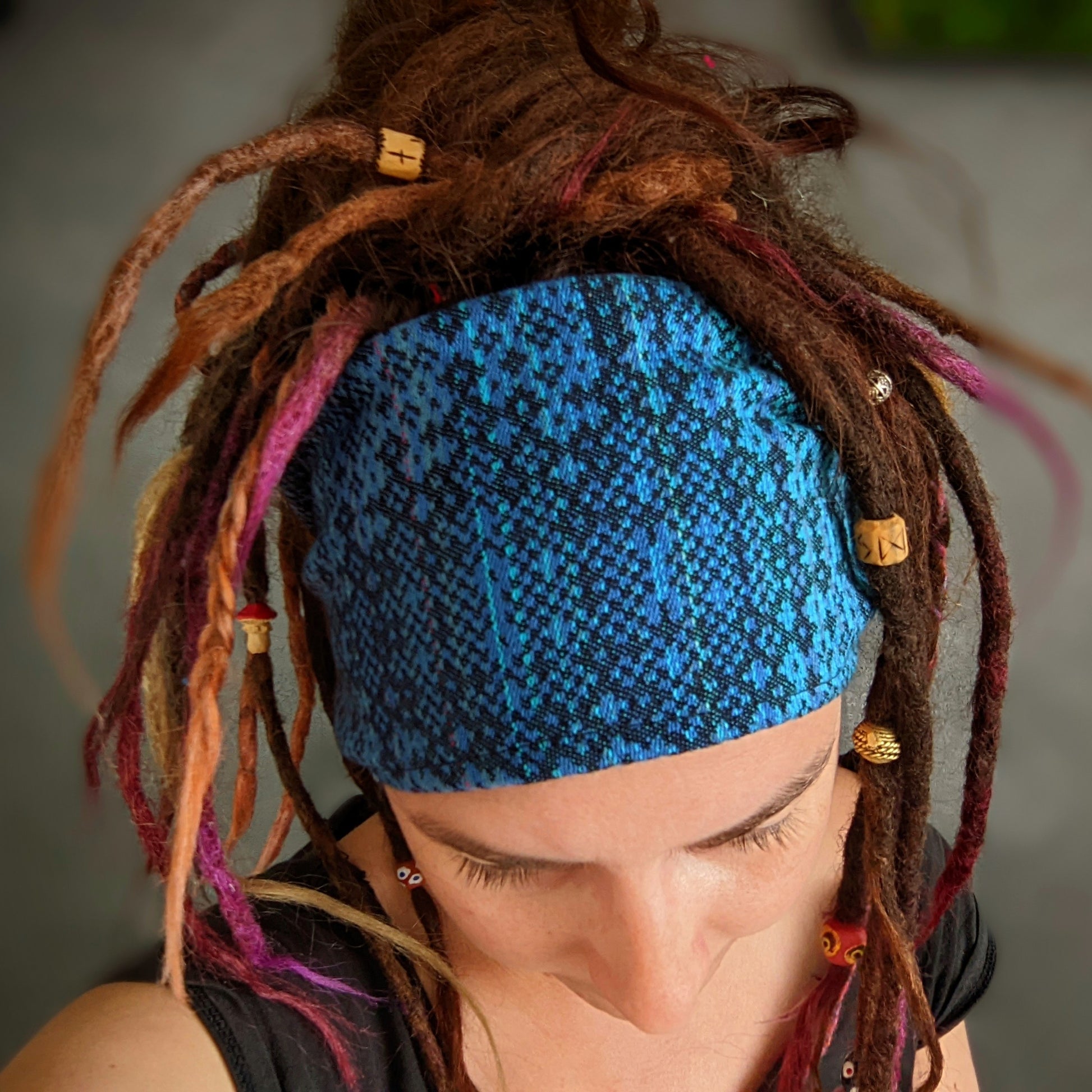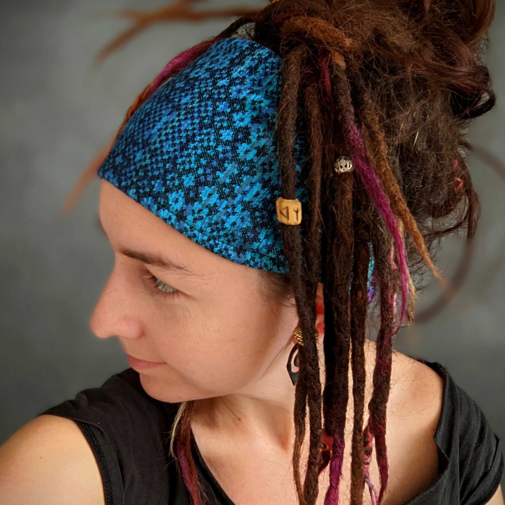 Šátkové čelenky jsou super na sport, na léto, když nechcete, aby vám svítilo na hlavu, ale také chcete-li zkrotit vlasy padající do očí. U copánků jsou ideální na zakrytí odrostů, pokud je máte zapletené už delší dobu a skvěle poslouží i na dready a fakedready. Velikost se snažím šít co nejvíce univerzální.