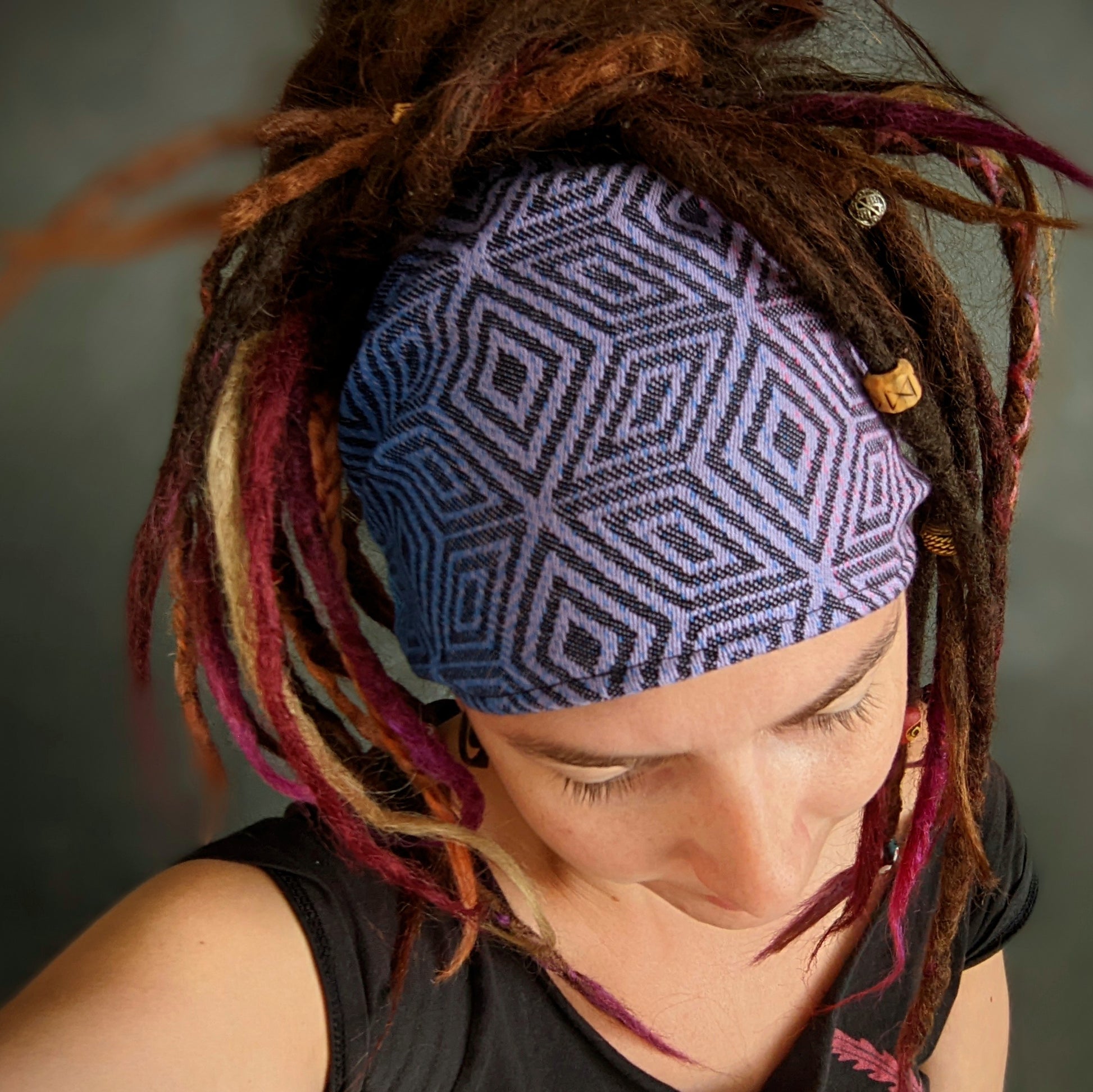 Praktická šátková čelenka šitá z odstřižku z šátku na nošení dětí.