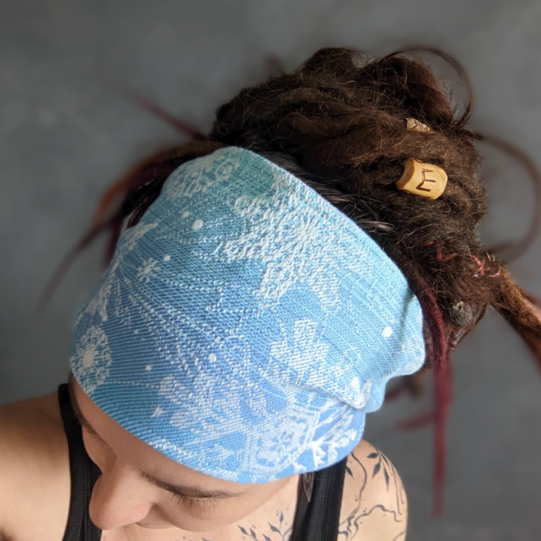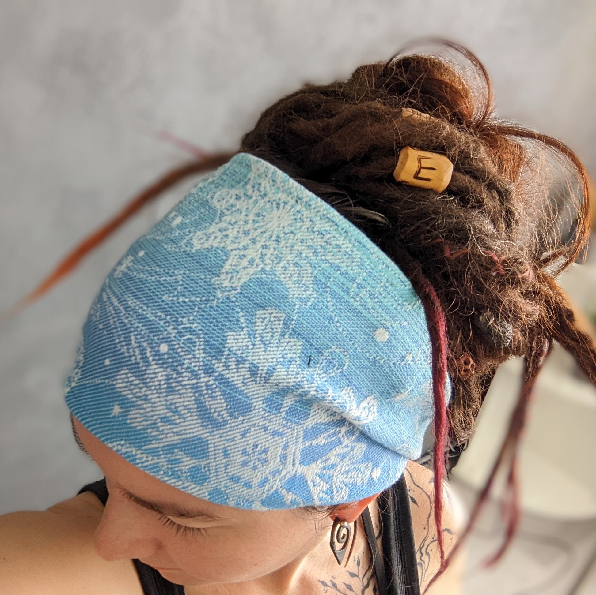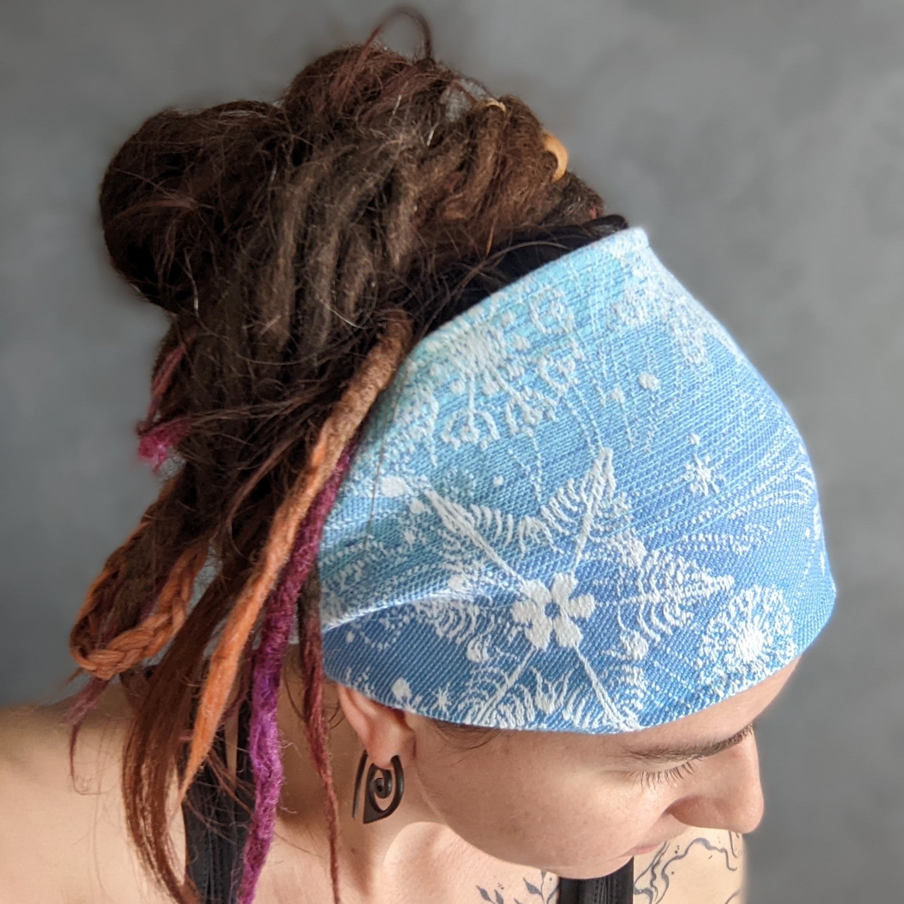 Praktická šátková čelenka šitá z odstřižku z šátku na nošení dětí.