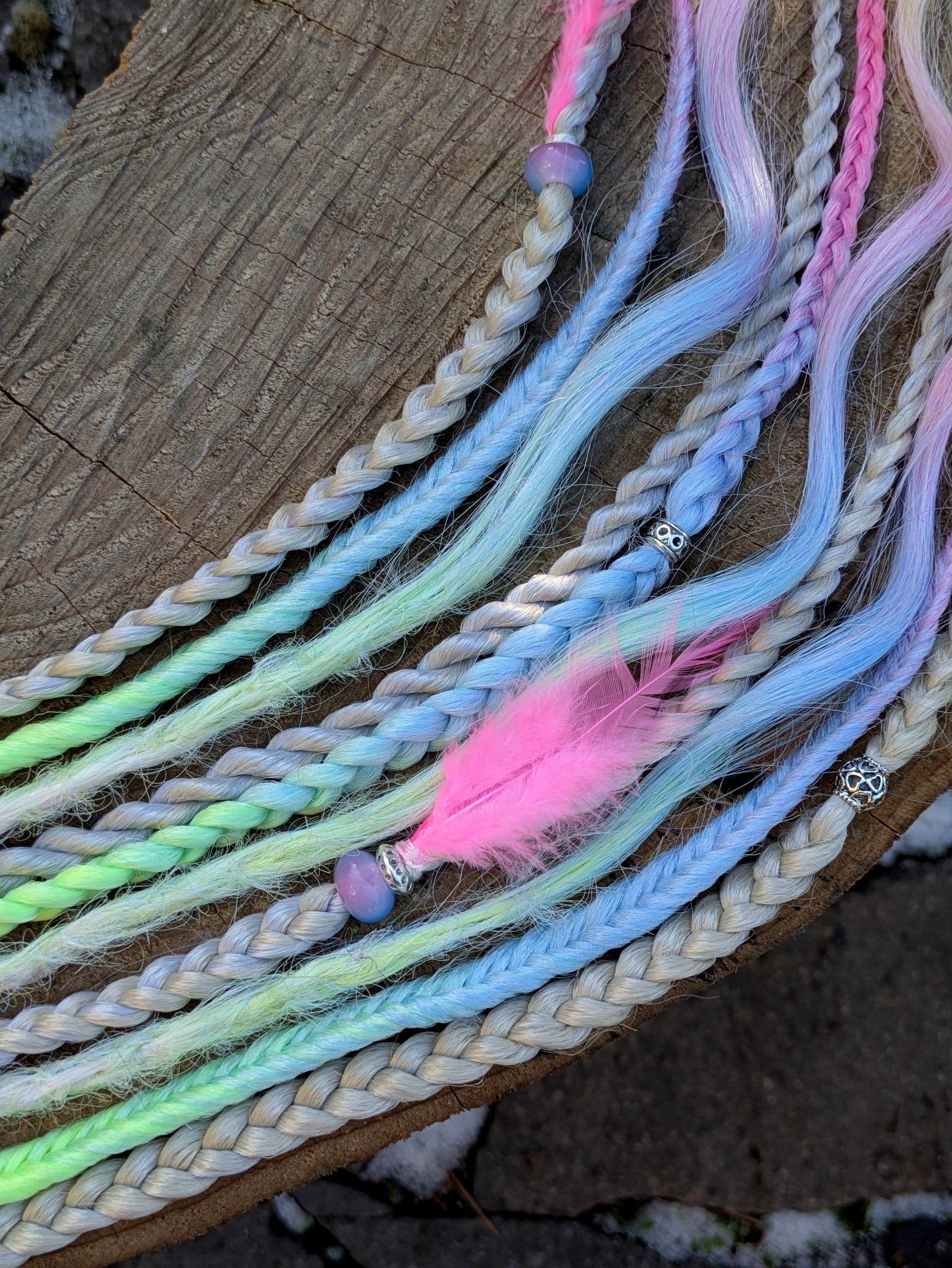 You can easily attach braids with an elastic band to a ponytail or bun.