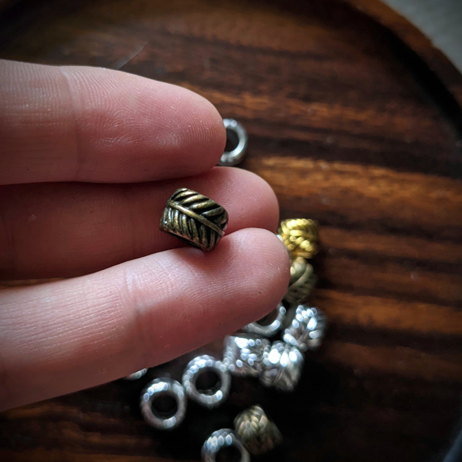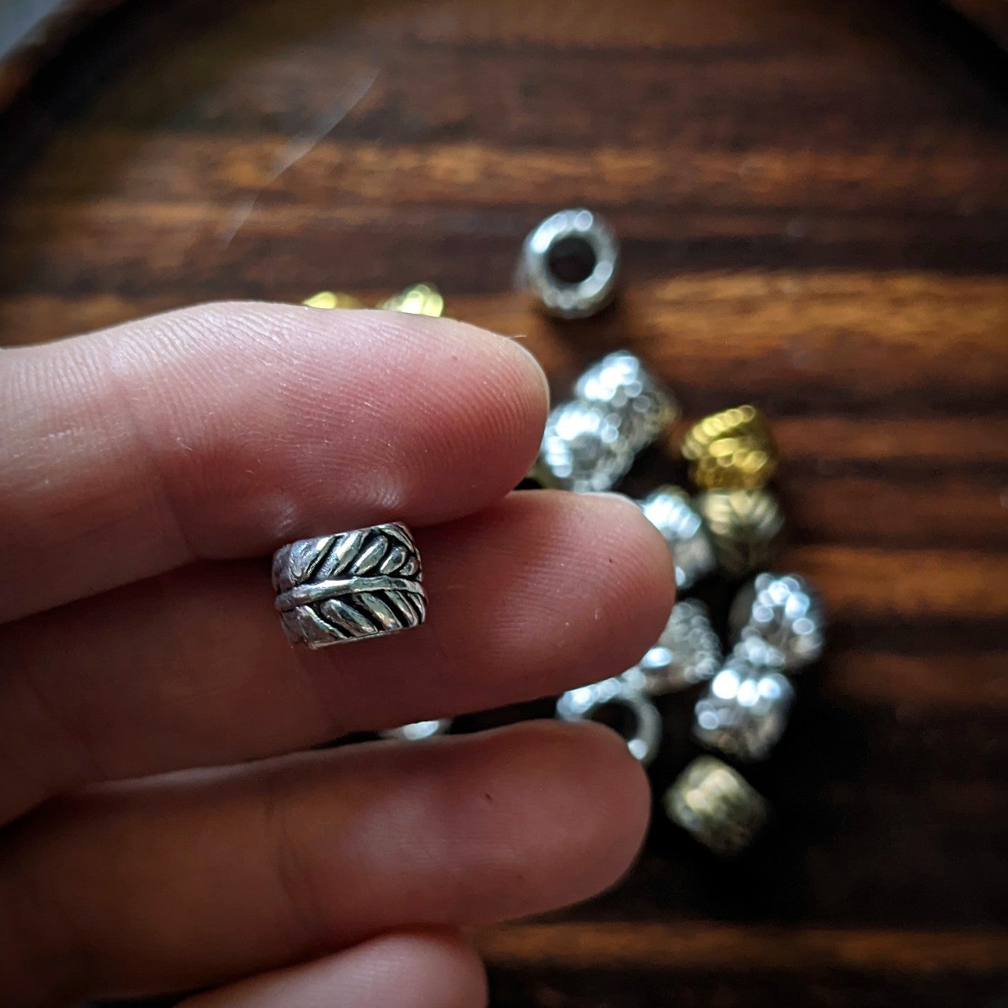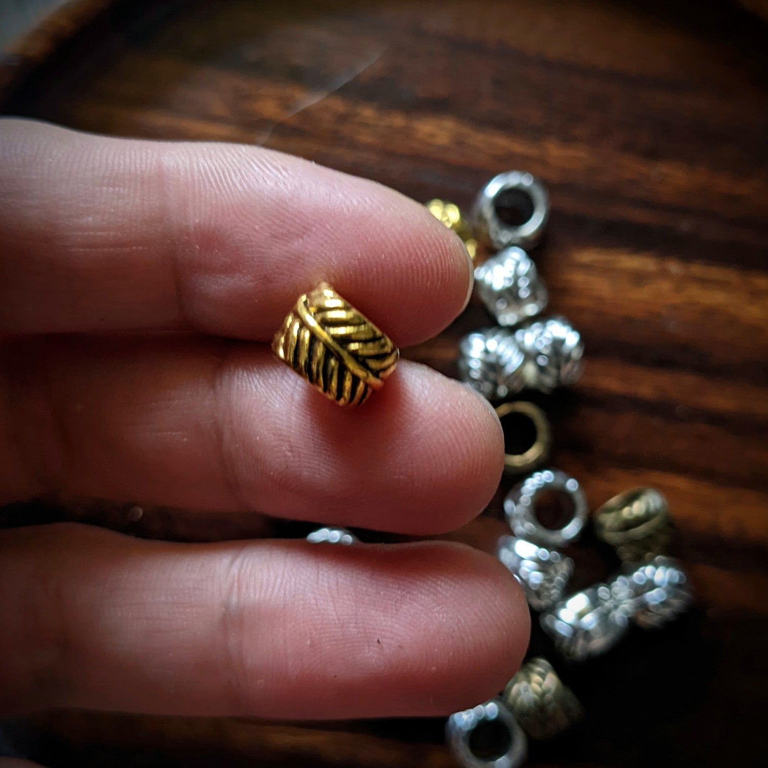 Metal beads suitable for rasta braids or thin dreadlocks.