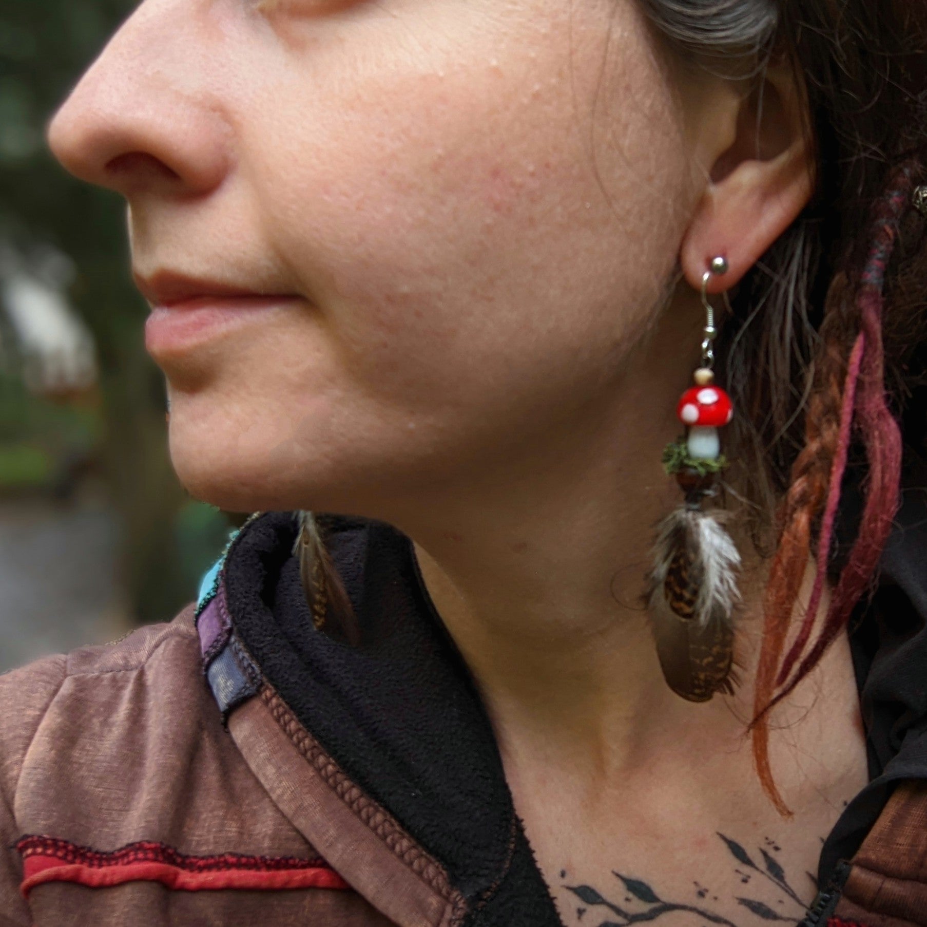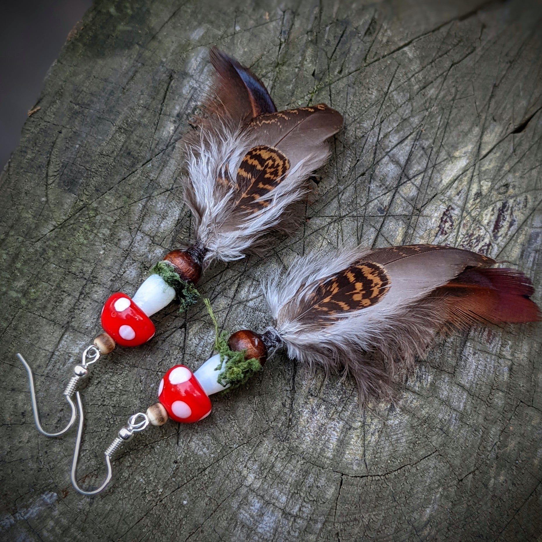 Earrings with feathers and acorns. The hooks are made of surgical steel, supplied with silicone stoppers. The length of the hanging part of the earrings is approx. 10 cm.