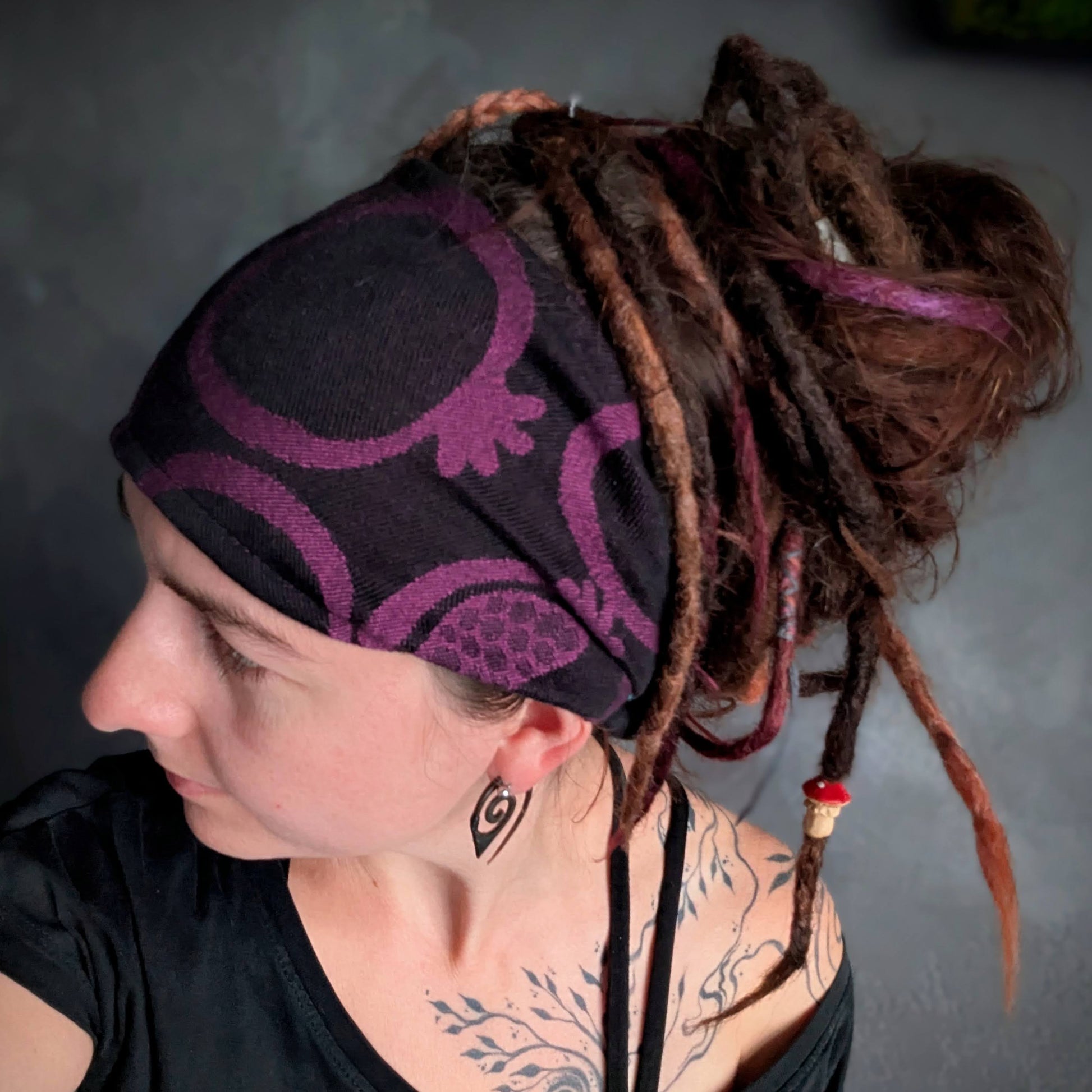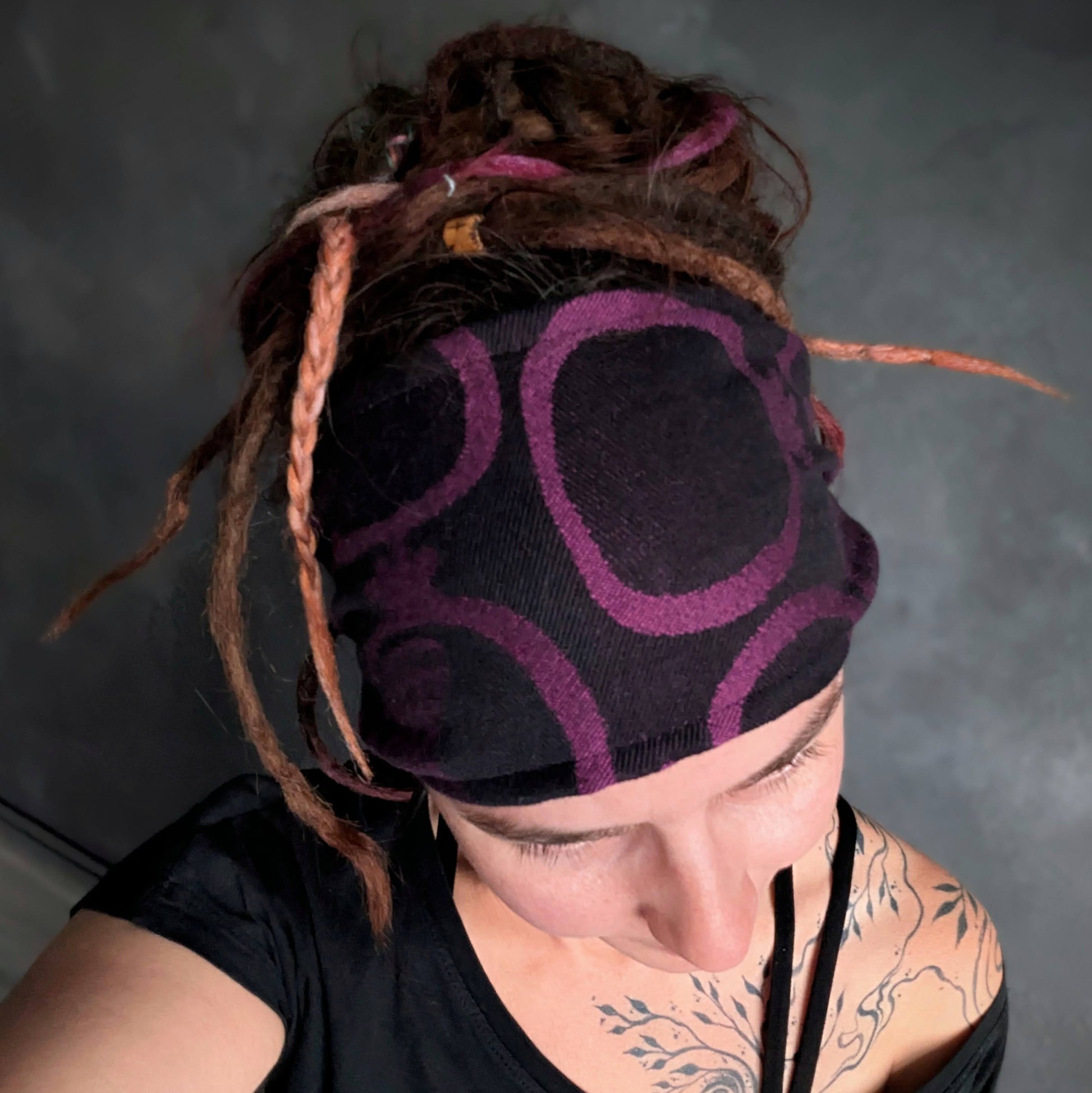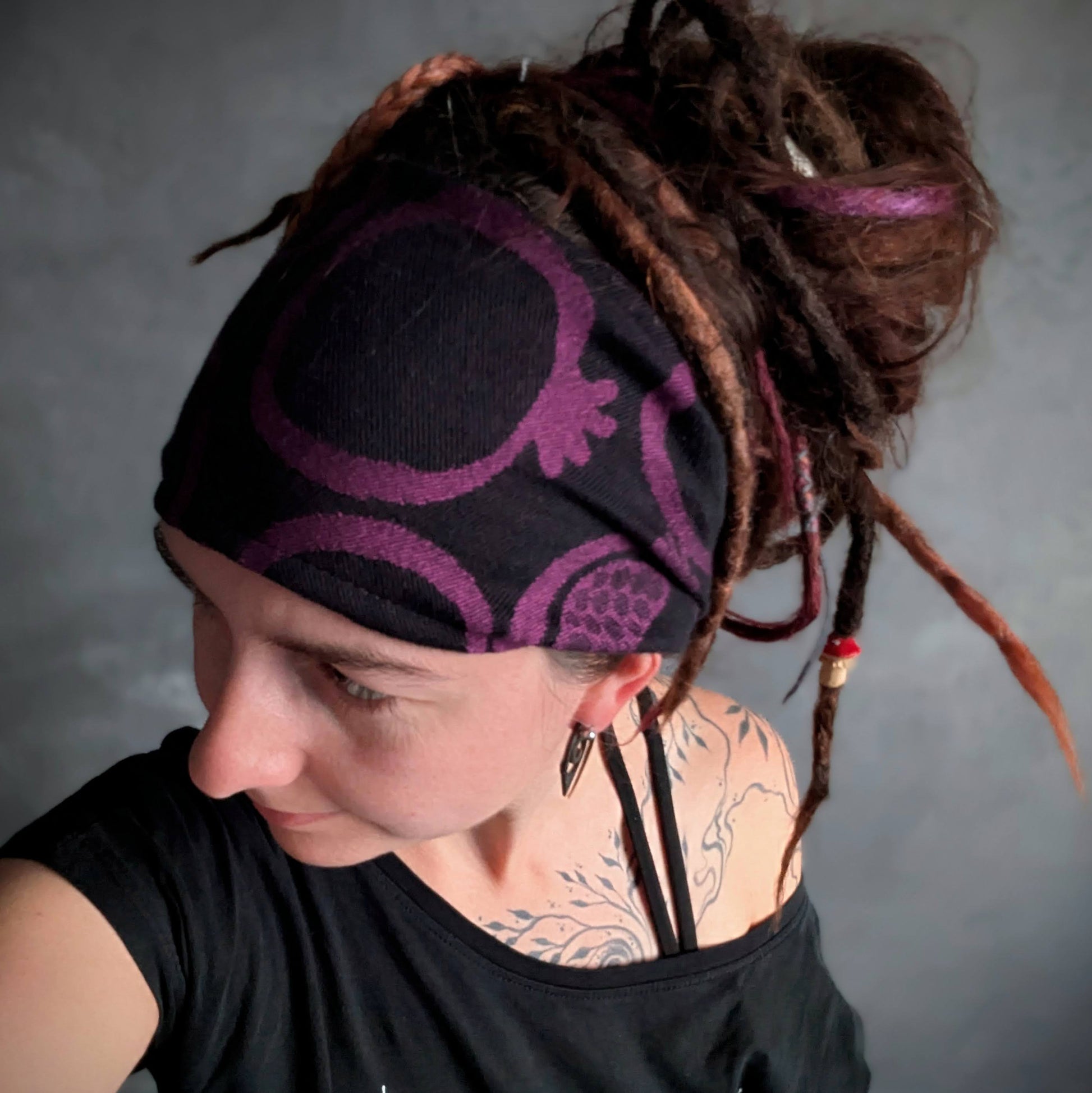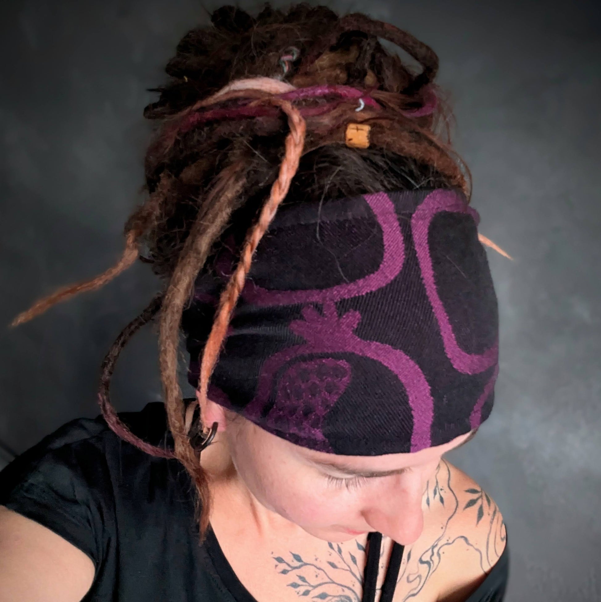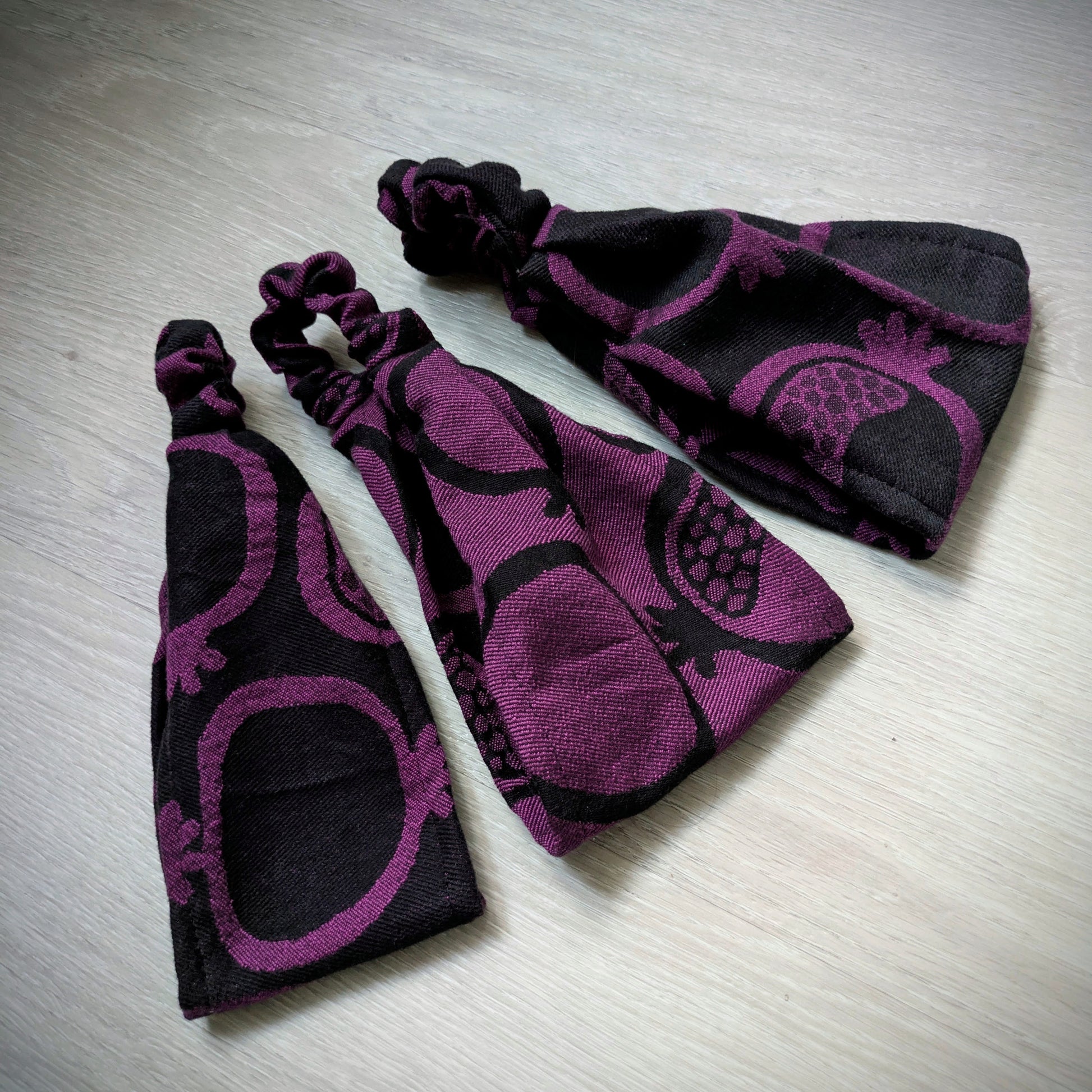 Practical scarf headband sewn from a babywearing scarf cutout (Yaro brand).