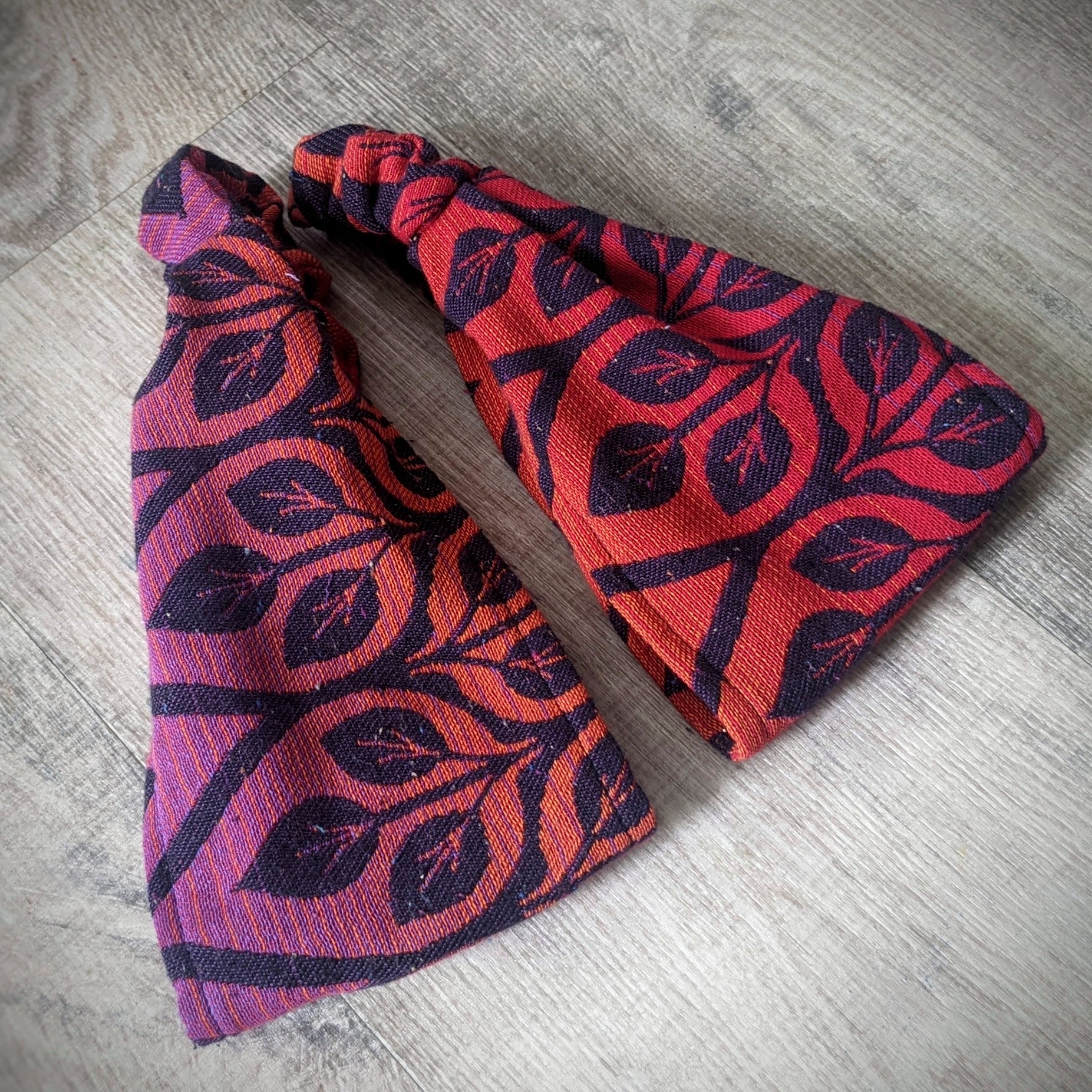 Practical scarf headband sewn from a babywearing scarf cutout.