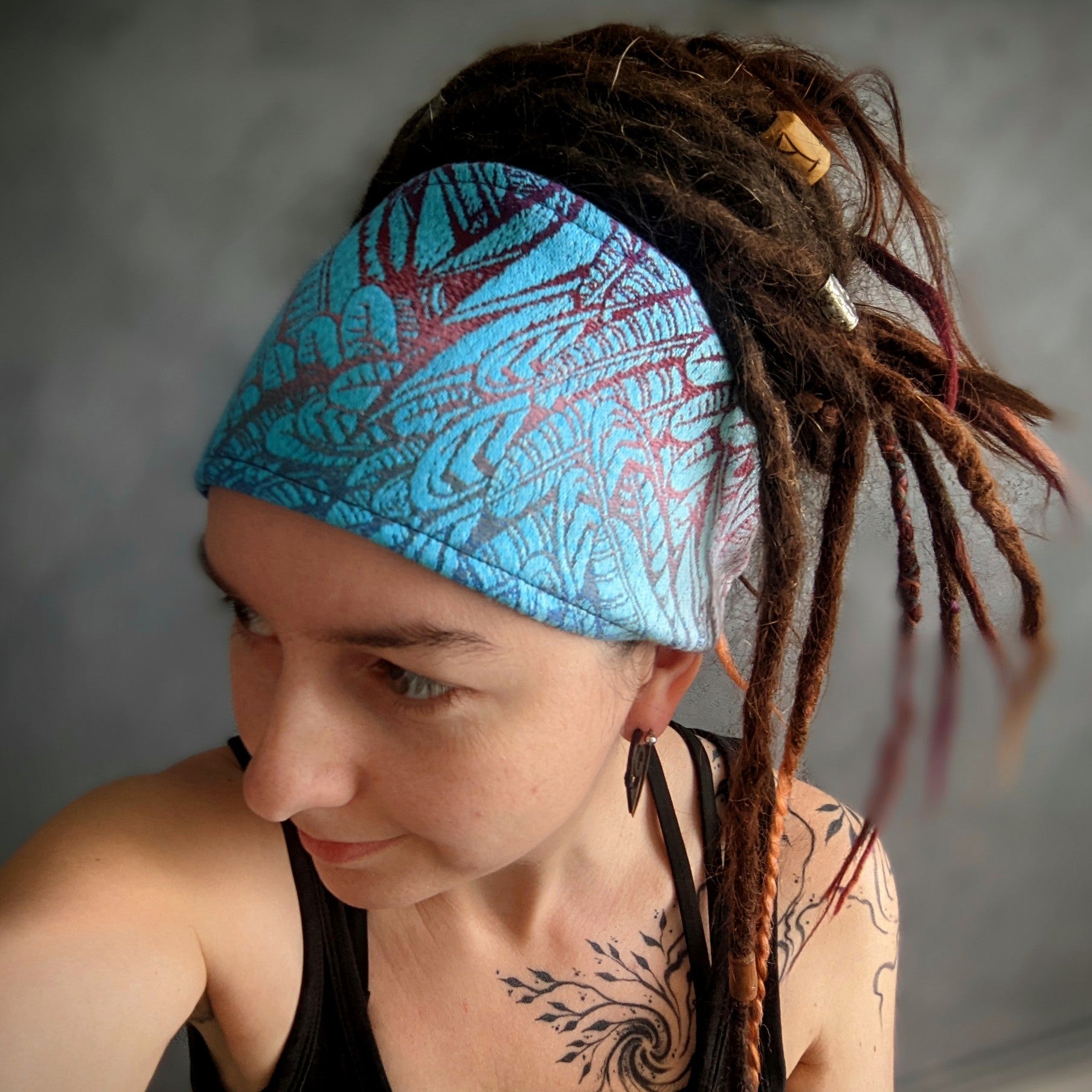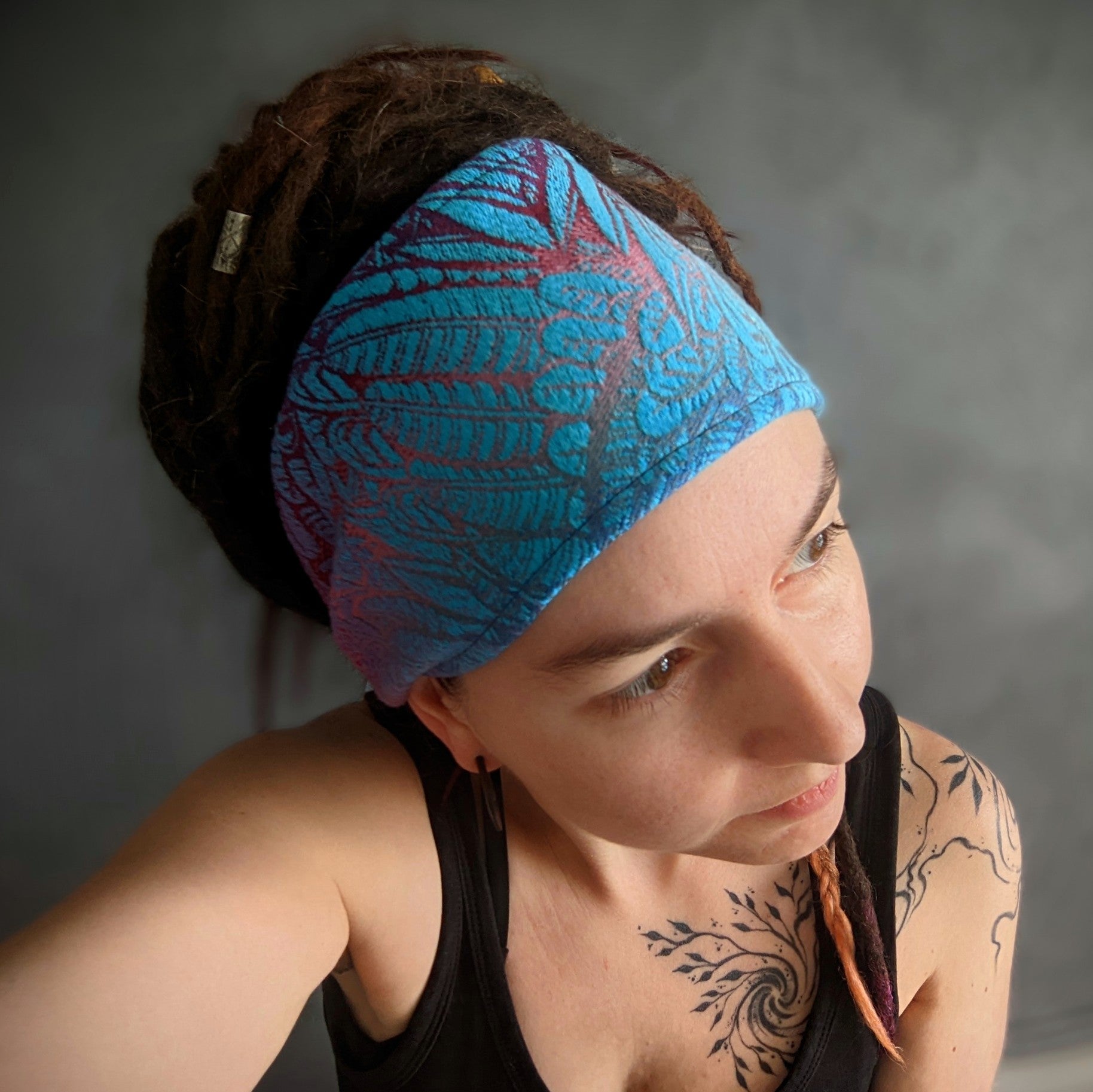 Practical scarf headband sewn from a babywearing scarf cutout.
