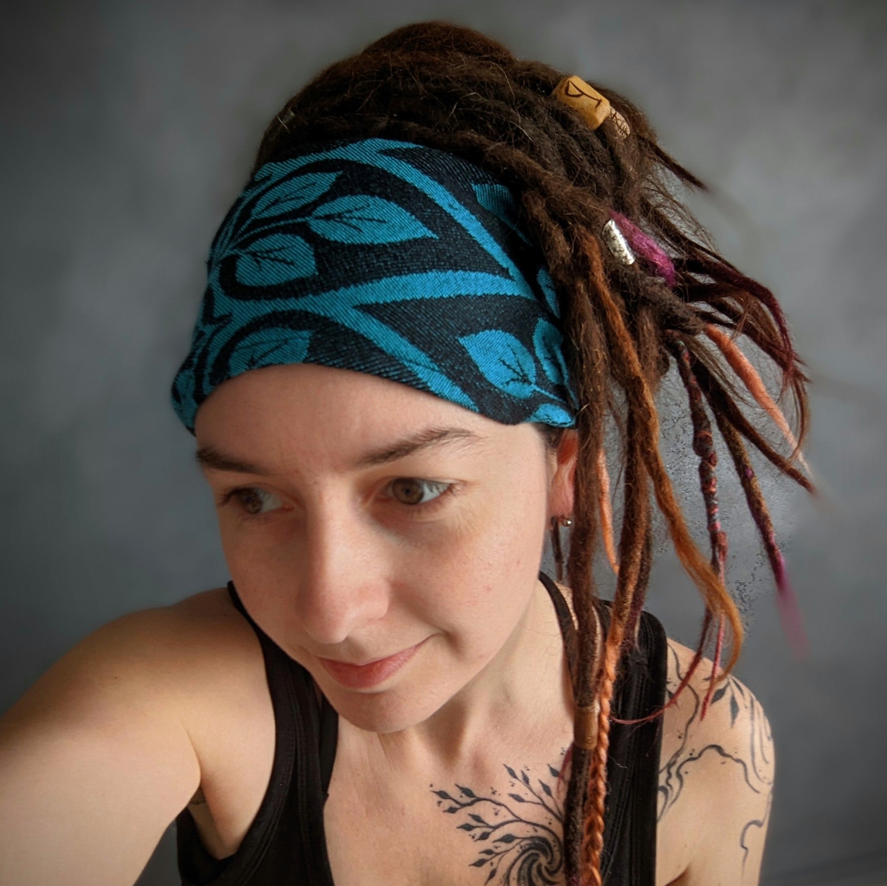 Practical scarf headband sewn from a babywearing scarf cutout.