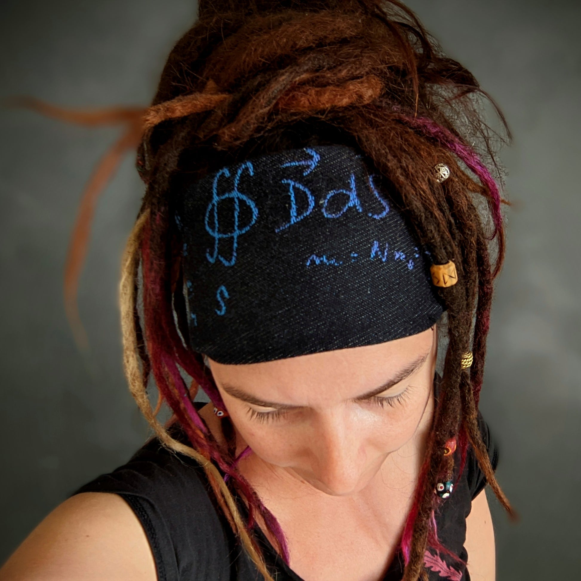 Practical scarf headband sewn from a babywearing scarf cutout.
