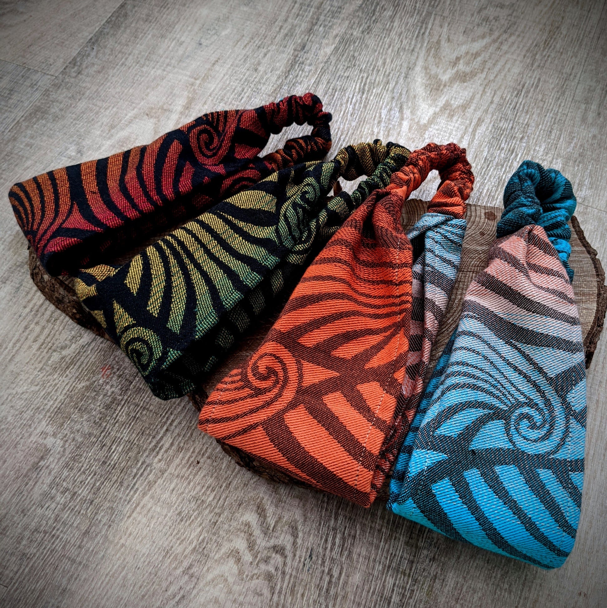 Practical scarf headband sewn from a babywearing scarf cutout.
