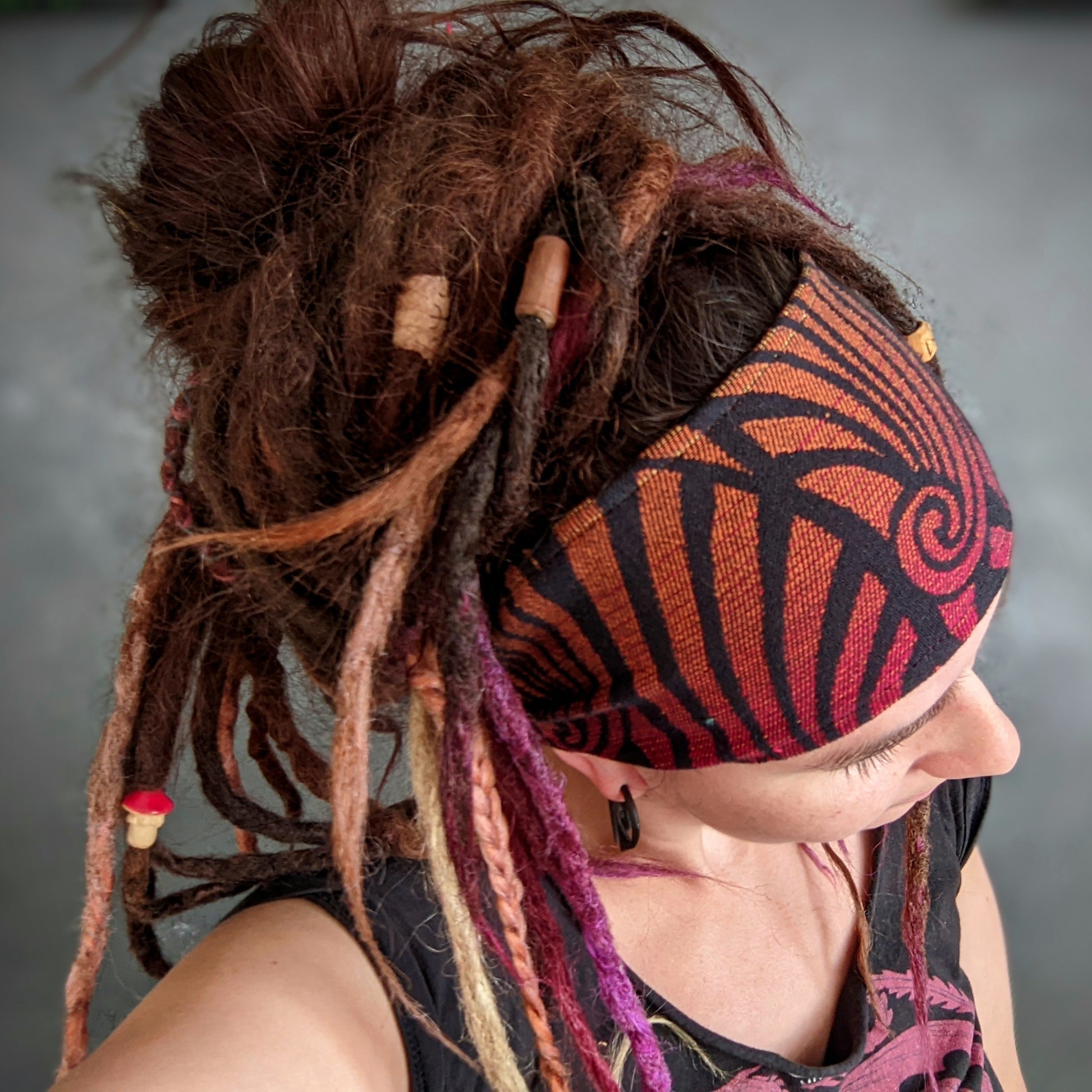 Scarf headbands are great for sports, for summer when you don't want the sun shining on your head, but also if you want to tame hair falling into your eyes. For braids, they are ideal for covering hair growth if you have had them braided for a long time and are also great for dreads and fake dreads. I try to sew the size as universal as possible.