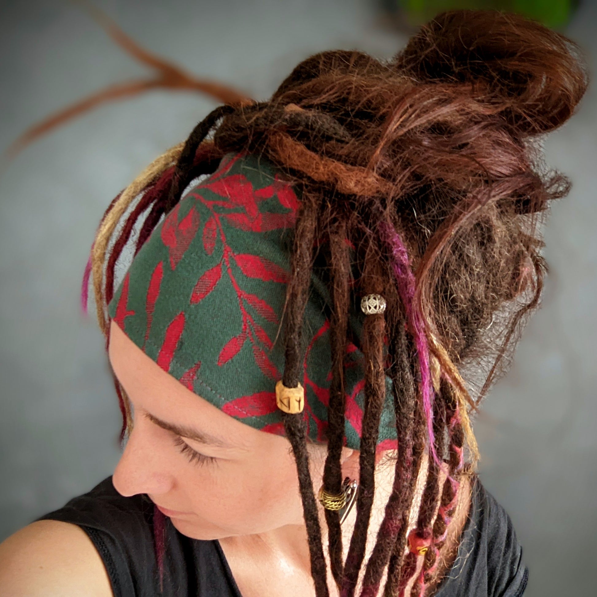 Scarf headbands are great for sports, for summer when you don't want the sun shining on your head, but also if you want to tame hair falling into your eyes. For braids, they are ideal for covering hair growth if you have had them braided for a long time and are also great for dreads and fake dreads. I try to sew the size as universal as possible.