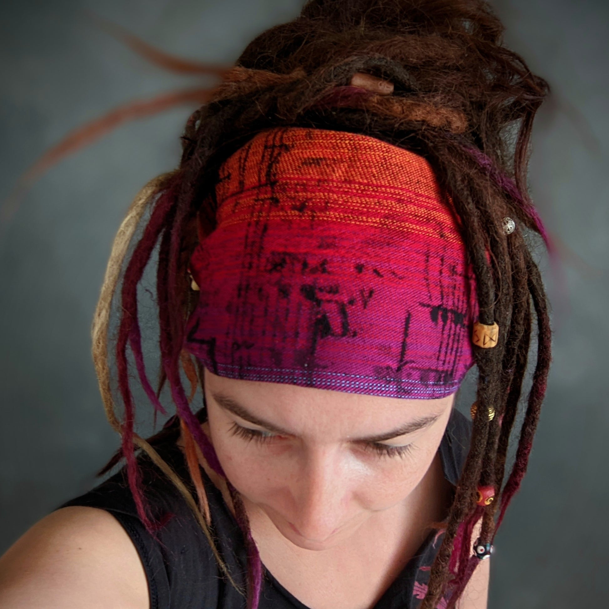 Practical scarf headband sewn from a babywearing scarf cutout.